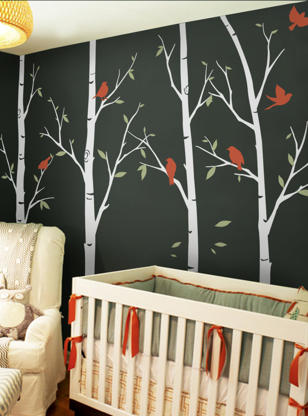 Customized birch tree decals for your living room, bedroom, or baby nursery! The birds and leaves can go anywhere on the tree. Arrange them any way you like. Choose a Color Scheme A, B, C or choose custom colors!