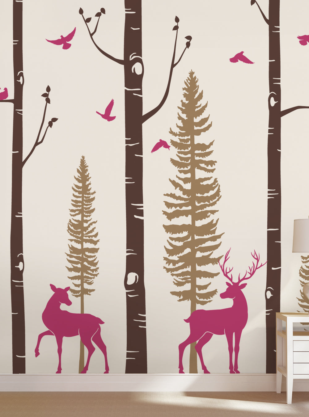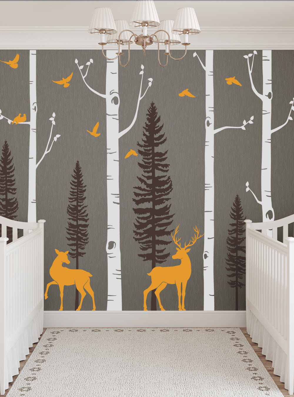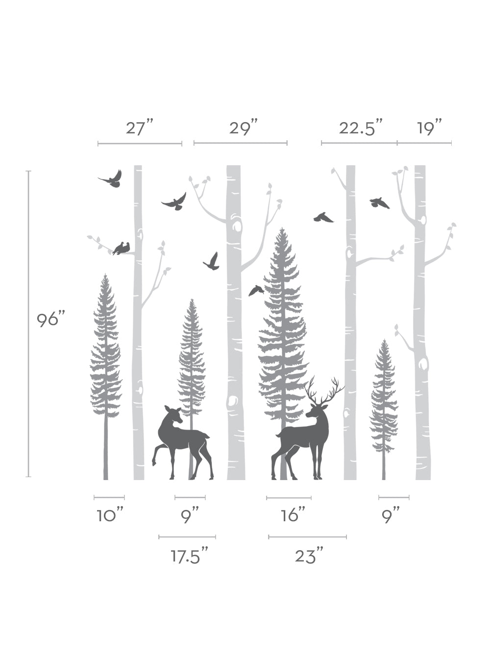 The trees, branches, birds and deer are all separate decals so you can arrange them anyway you like!