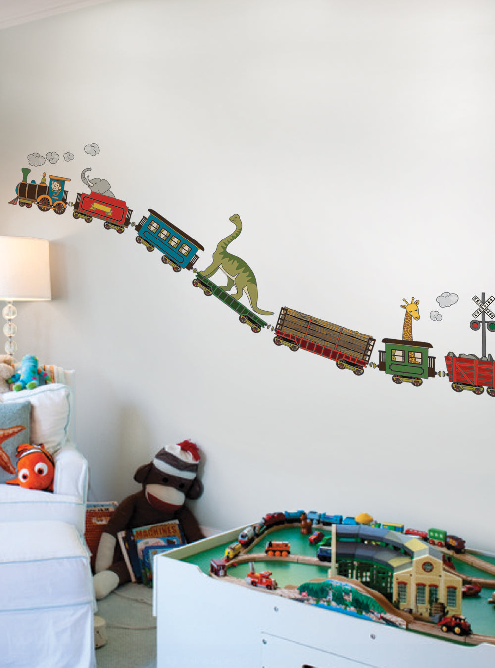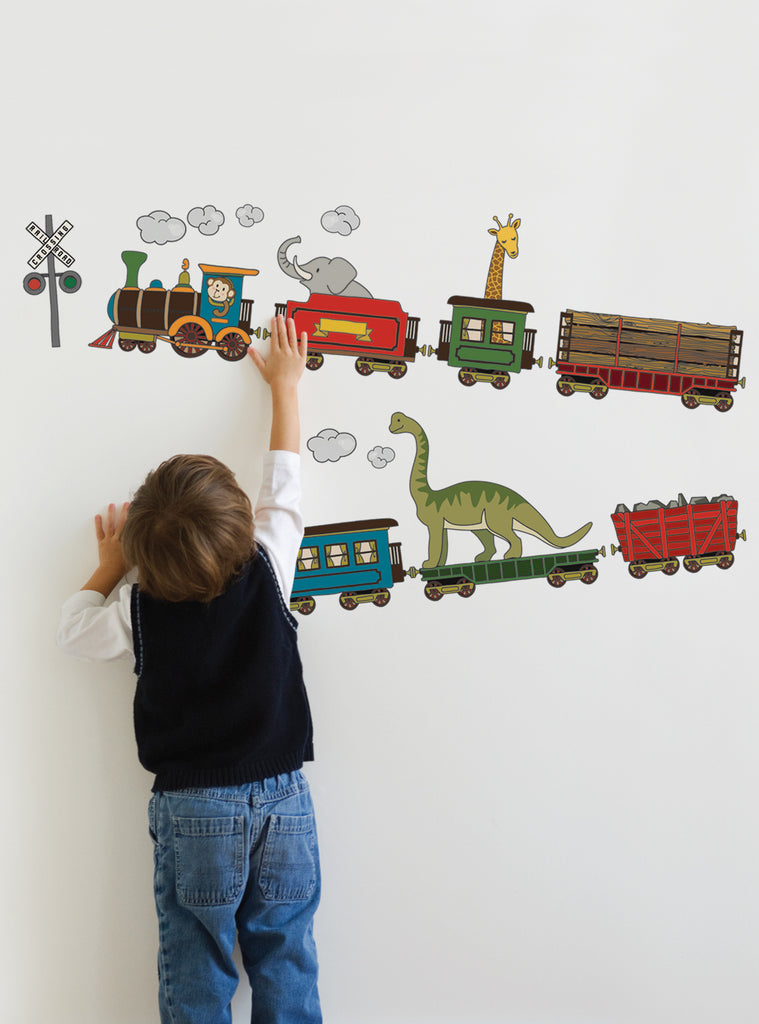 Peel and Stick Reusable Wall Stickers. Each train is its own sticker that your child can peel off and stick to the wall. You will love the fact that they can peel off and move the stickers around as they please.