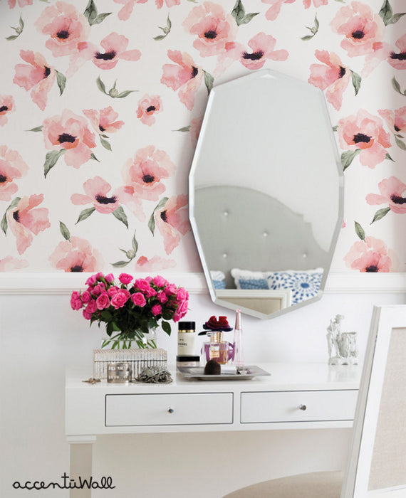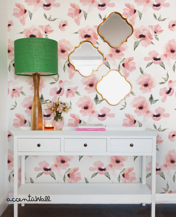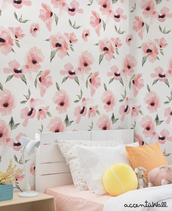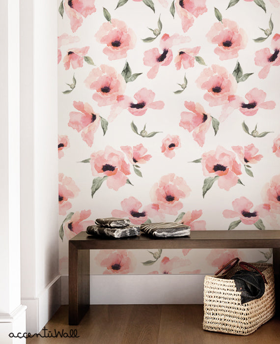 Our Watercolor Poppy Flowers wallpaper is a beautiful and artistic design that adds a touch of nature and sophistication to any room in your home. This wallpaper features a stunning display of watercolor poppy flowers, creating a soft and elegant visual. The delicate brushstrokes of the design give it a hand-painted feel, making it a great choice for creating a peaceful and calming atmosphere.