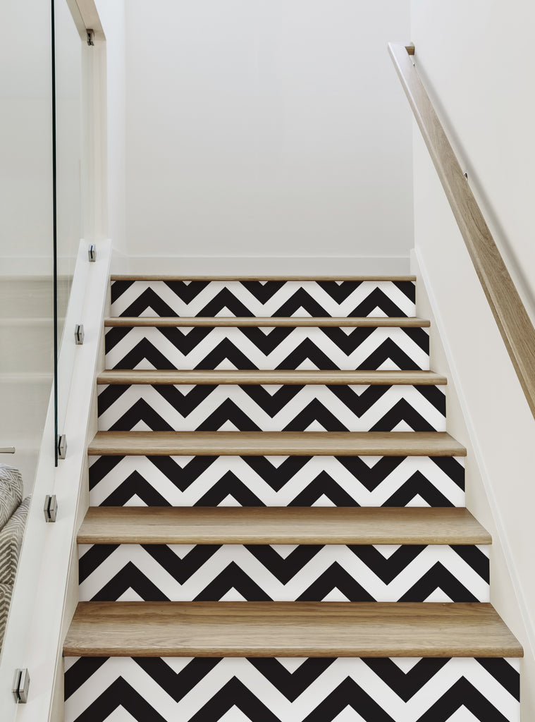 Transform any stairway into a geometric masterpiece and make a bold statement with our Chevron Stair Riser Strips! Custom colors let you change the color of the pattern so you can show off your personality, or coordinate with your décor!