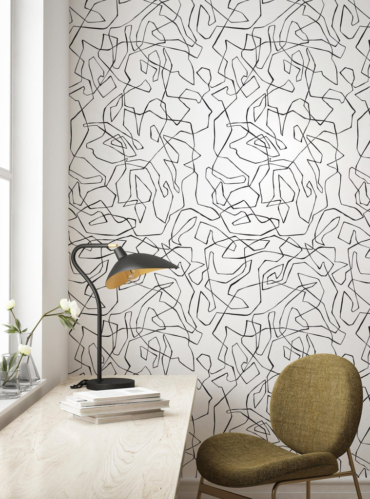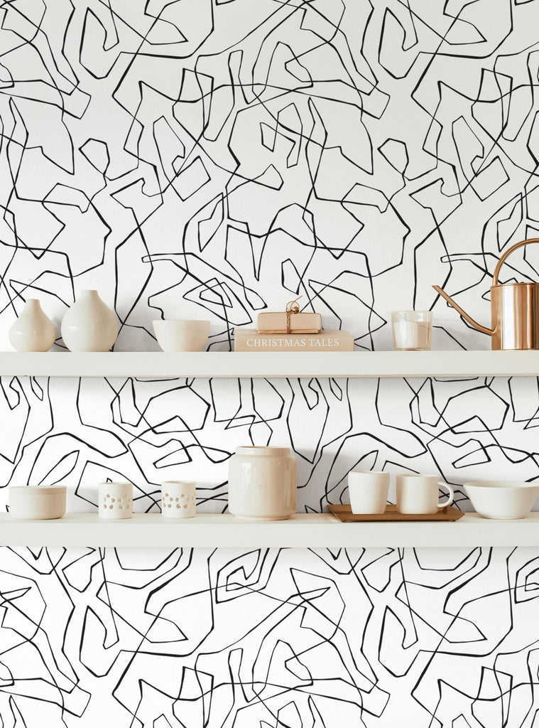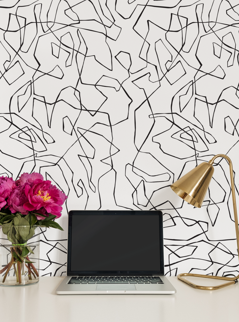 Give your walls a contemporary and luxurious look with this stunning Entangled Lines Abstract Wallpaper from Simple Shapes. It's bold, but casual design will make for a beautiful accent in any room. Simple Shapes wallpaper is proudly designed and made in the USA! Our wallpaper is ideal for DIY room makeovers.