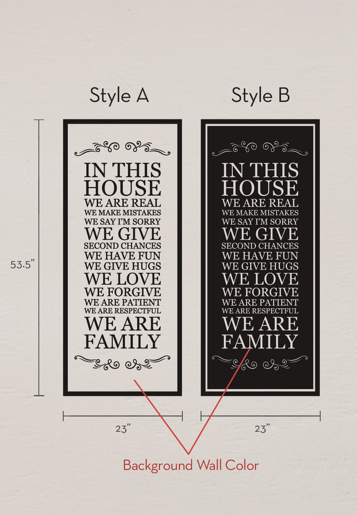In This House wall decal helps encourage meaningful family values. Please see important notes below about the two different styles we offer for this wall decal.