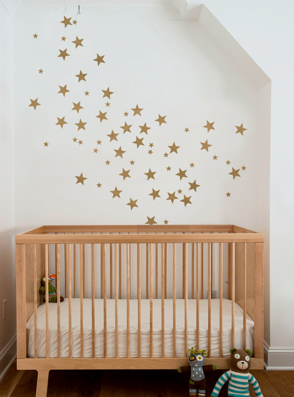 Small Stars Wall Decal gives shine and sparkle to bedrooms, nurseries, playrooms, and more! Available in Gold Metallic or any custom color from our color chart.