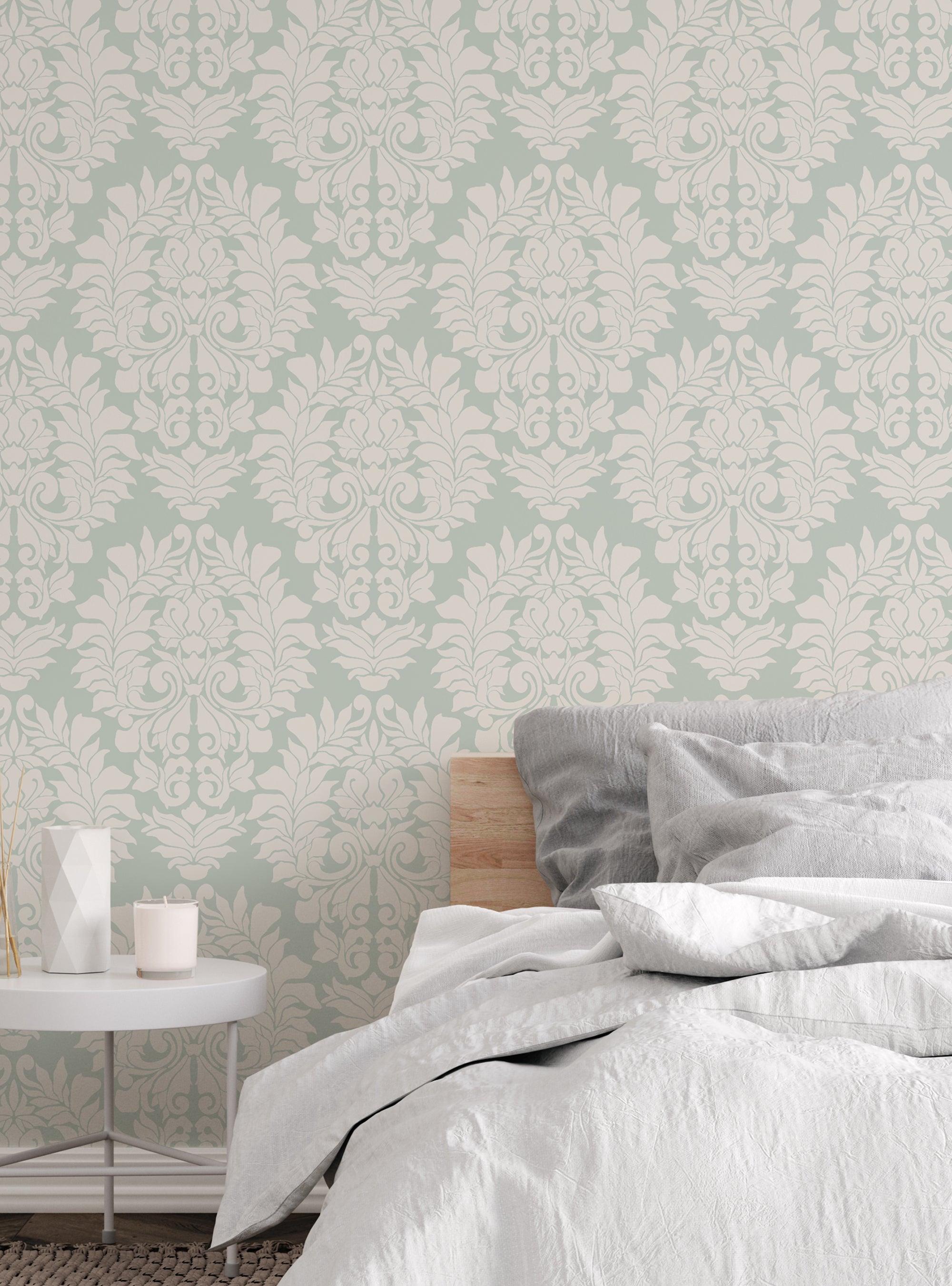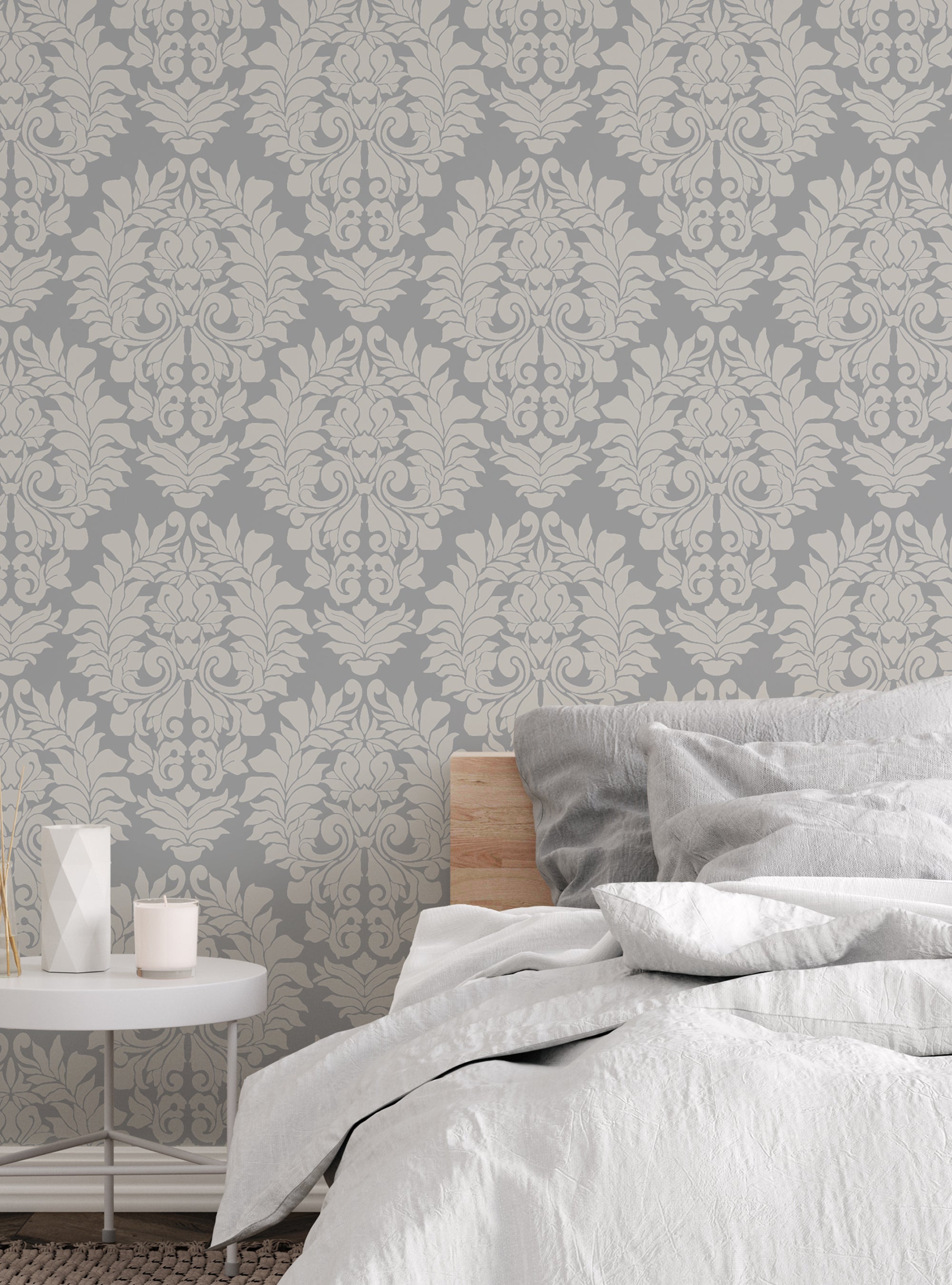 Damask Classic peel & stick wallpaper. The designs are printed onto an adhesive backed material that can be removed, repositioned and reused over and over again. They do not leave any residue on your walls and are ideal for DIY room makeovers without the mess and headaches of traditional wallpaper.
