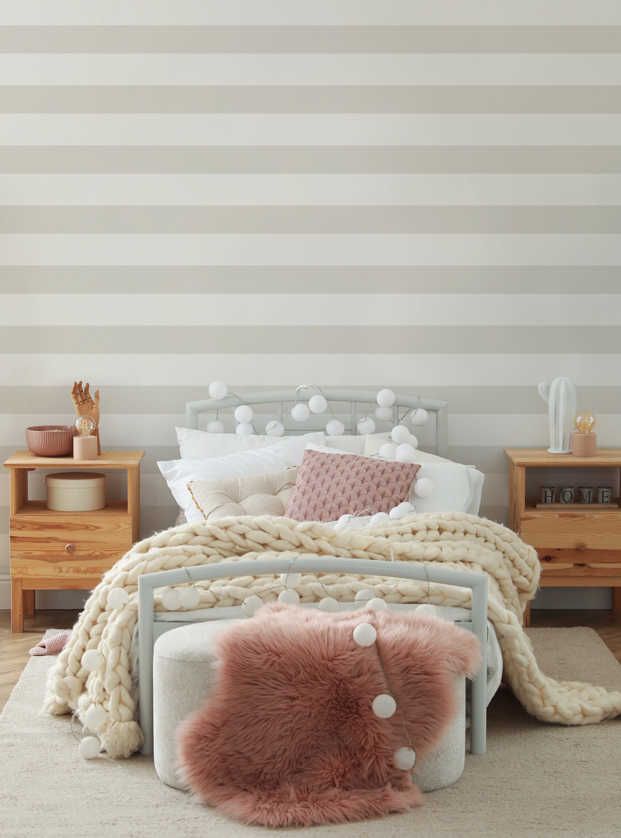 Our Horizontal Stripes wallpaper is a simple yet elegant design that adds a touch of sophistication to any room in your home. This wallpaper features a classic horizontal stripe pattern, creating a timeless and versatile visual. Available in a variety of colors, make it a great choice for creating a striking and modern feature wall.