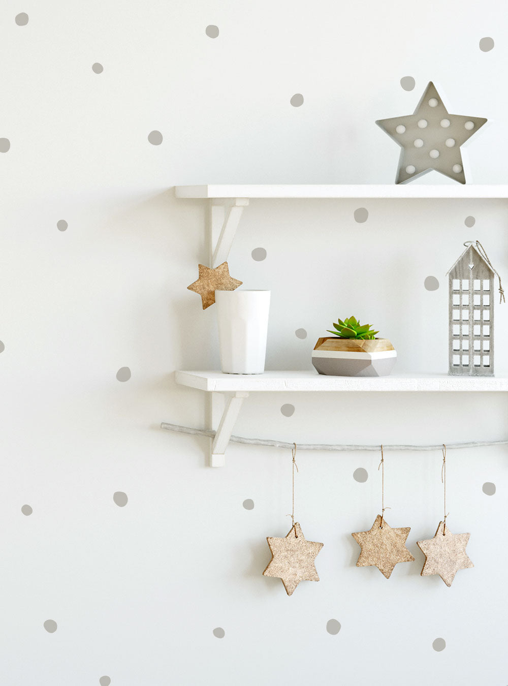 **Please note that each dot is an irregular-shaped dot, not a perfect circle. For dot decals that are perfect circles, please check out our Large Polka Dots or Small Polka Dots wall decals**