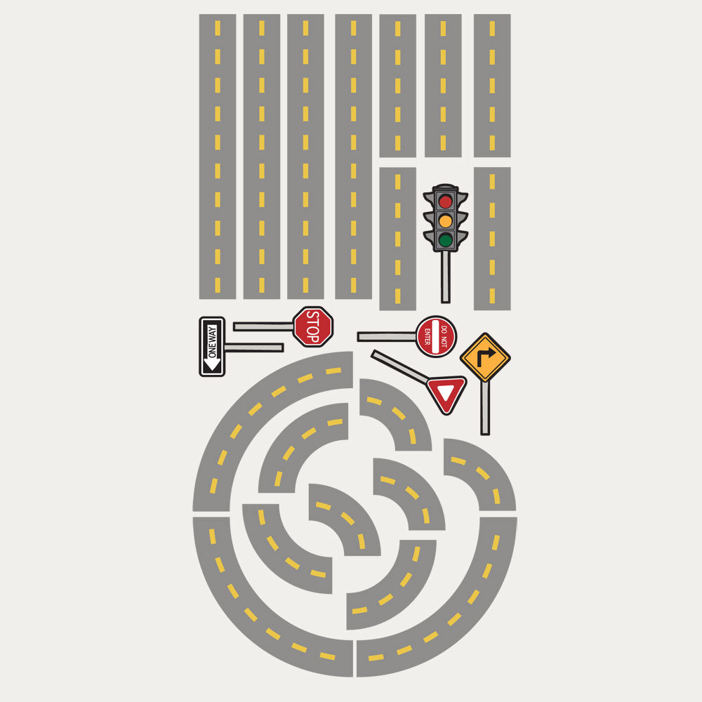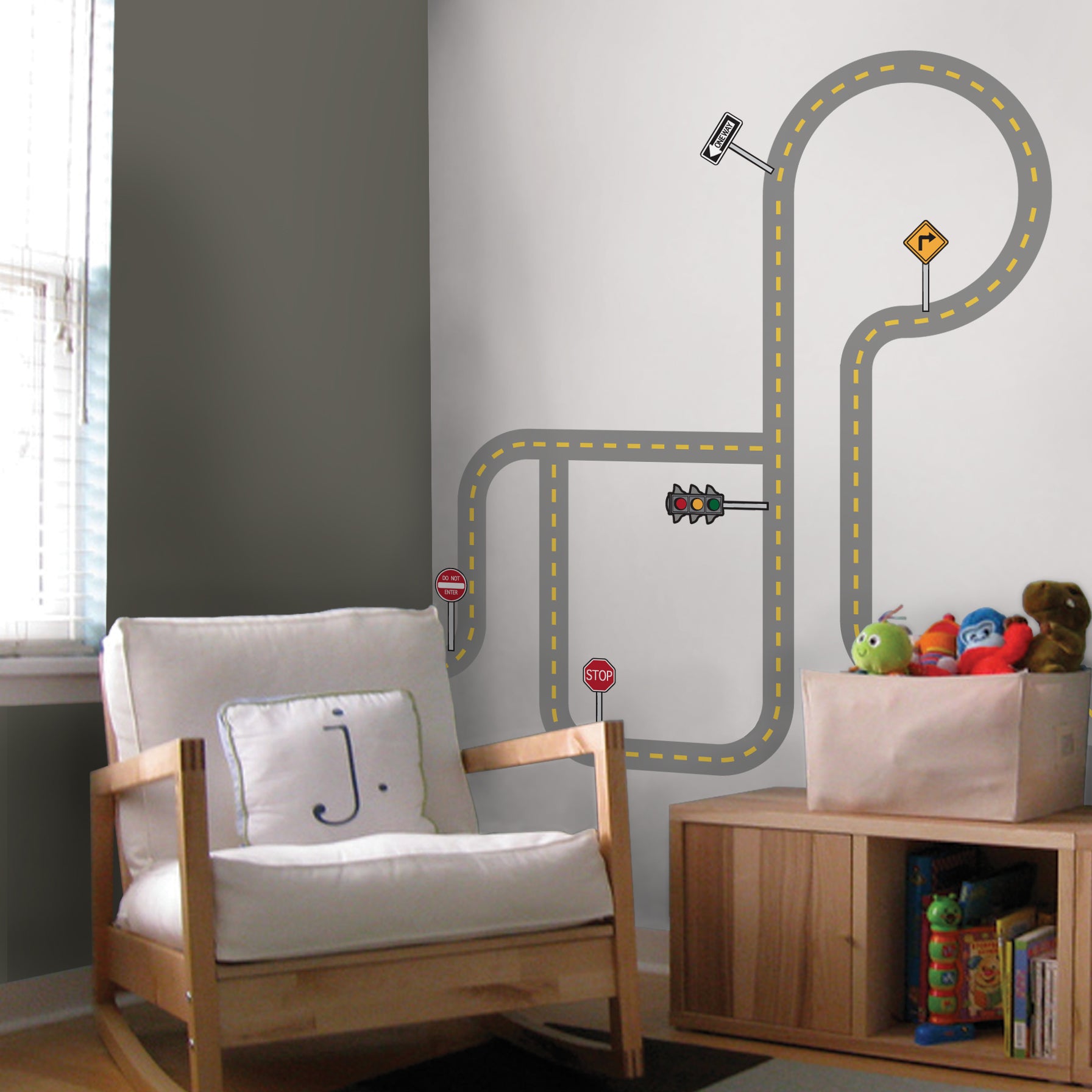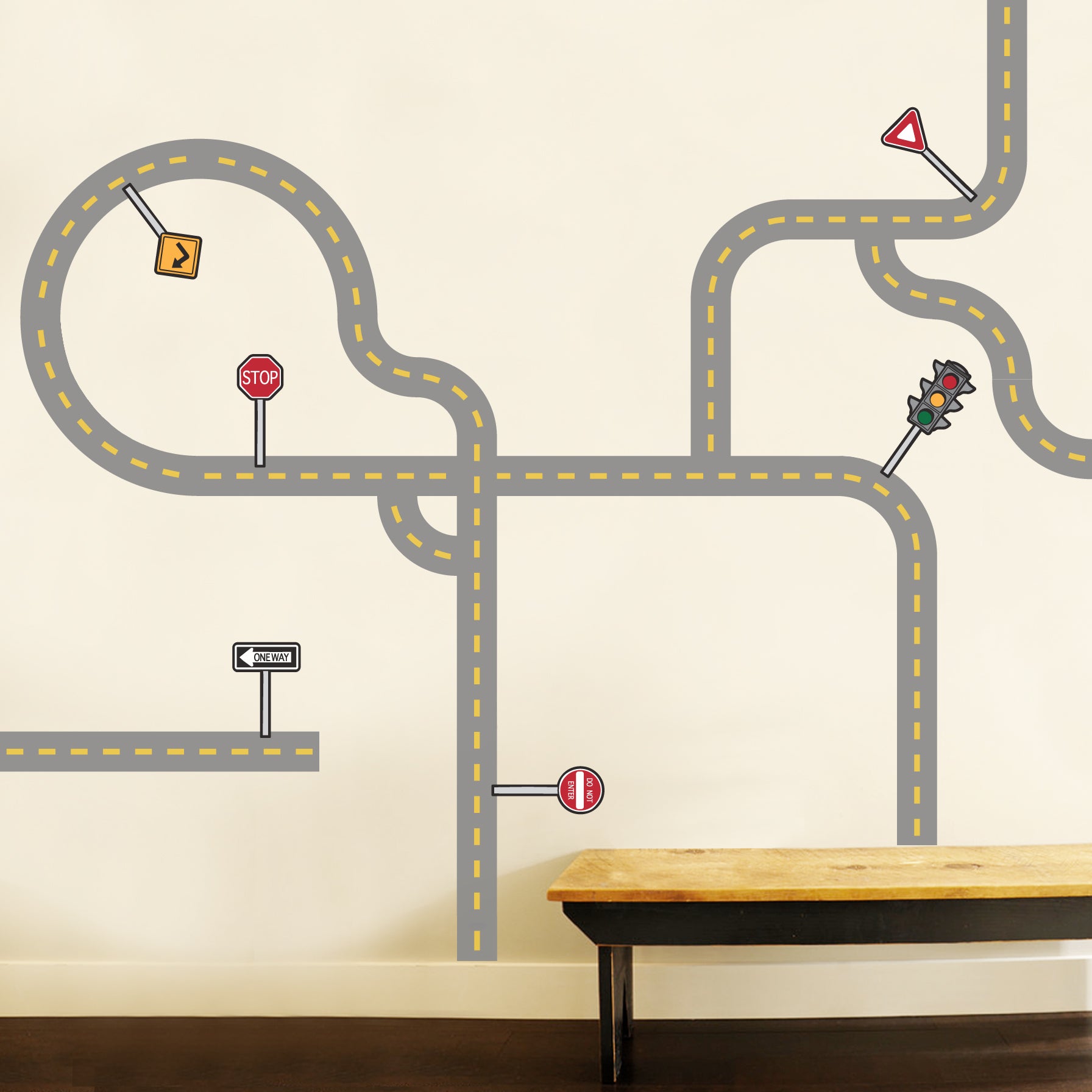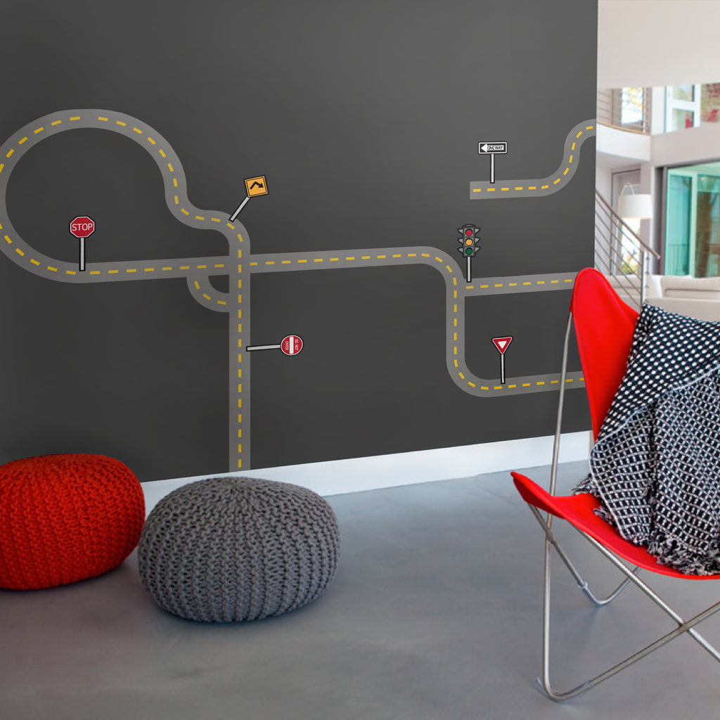Peel and Stick Road wall stickers that your little one can arrange and rearrange on the wall. These road stickers are designed to work with our vehicle sticker set which can be purchased.