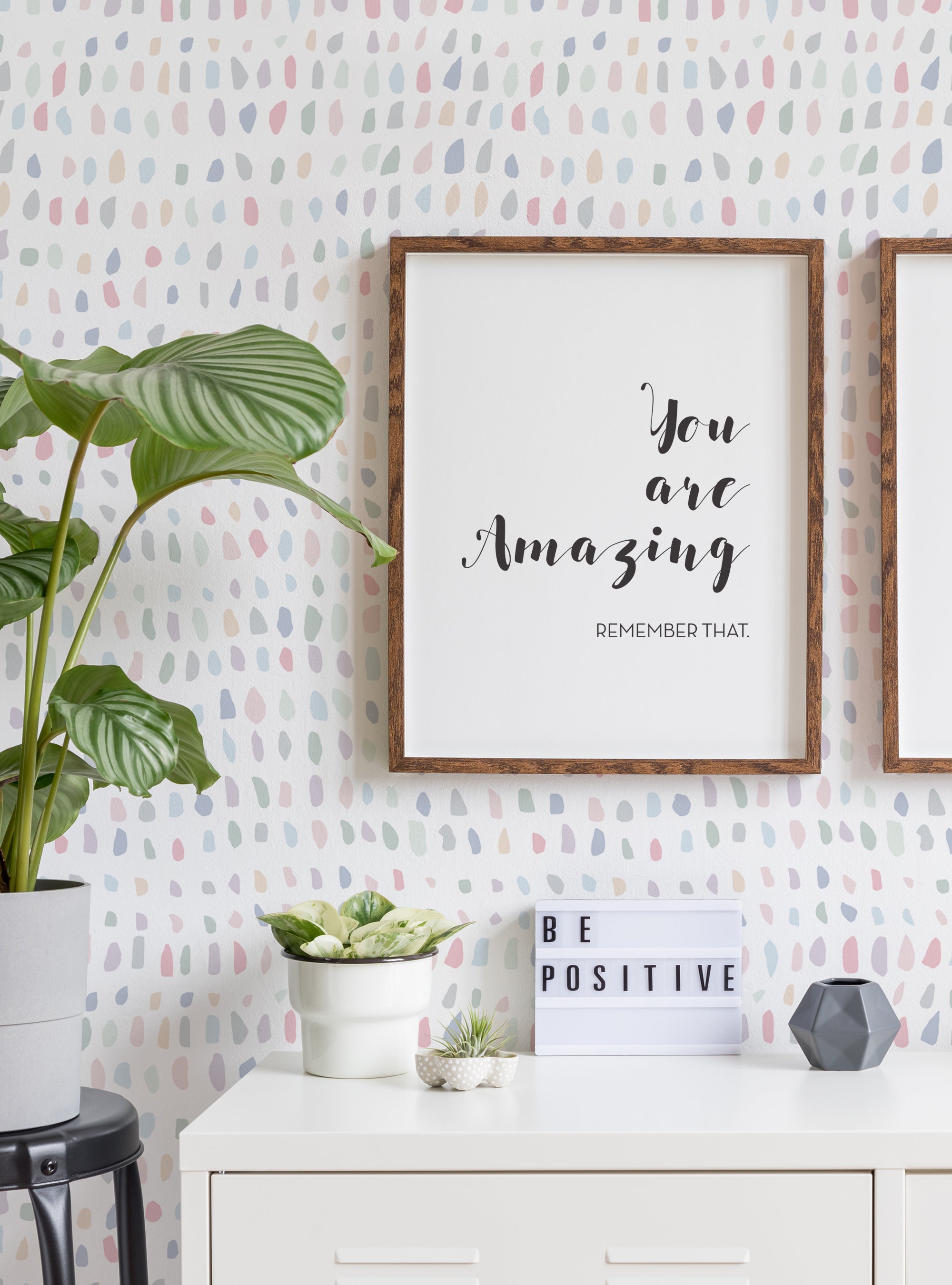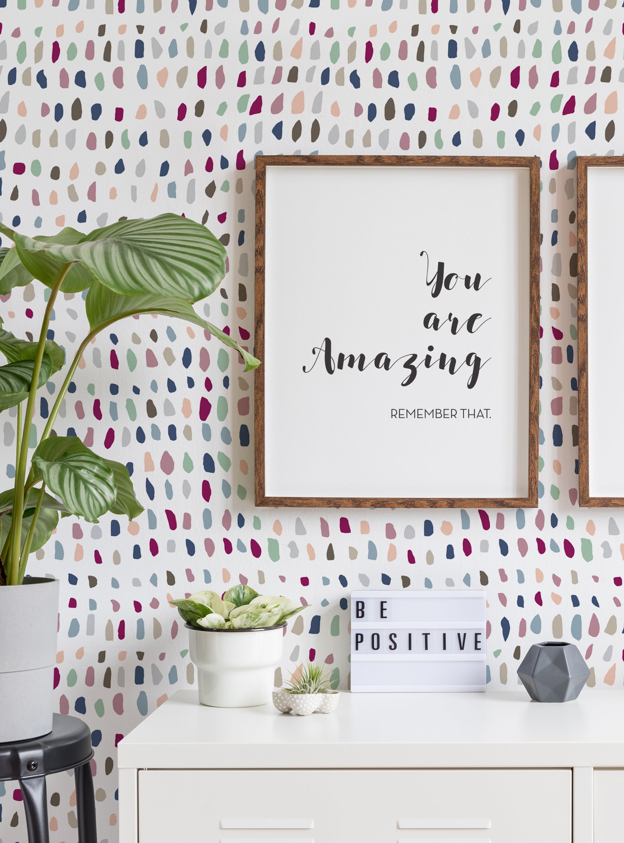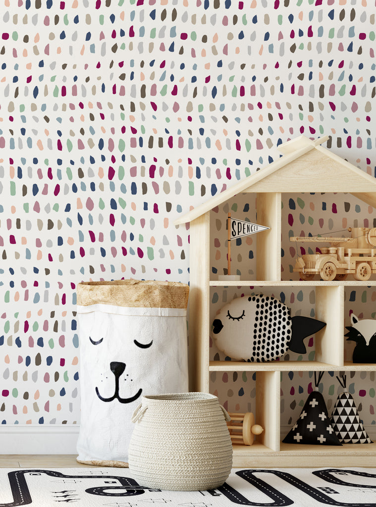 This repositionable wallpaper is designed and made in our studios in New Jersey. The designs are printed onto an adhesive-backed material that can be removed, repositioned, and reused. The wallpaper does not leave residue on your walls and is ideal for DIY room makeovers without the mess and headaches of traditional wallpaper.