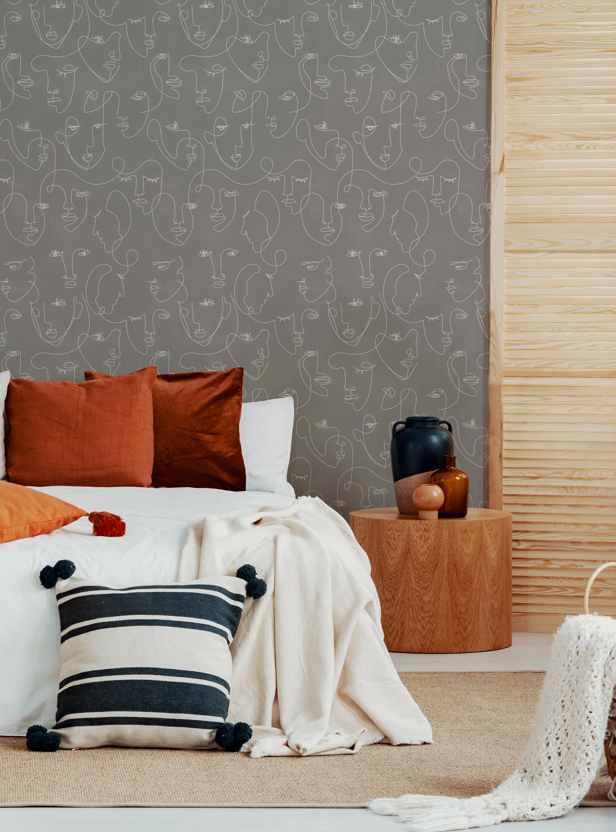 Invite an artistic decadence into your space with Simple Shapes Minimalist Face Textured Look Wallpaper. Perfect for the entryway, seating area or dining room, this one-of-a-kind wall piece will add a tasteful dimension of style and sophistication to any space.