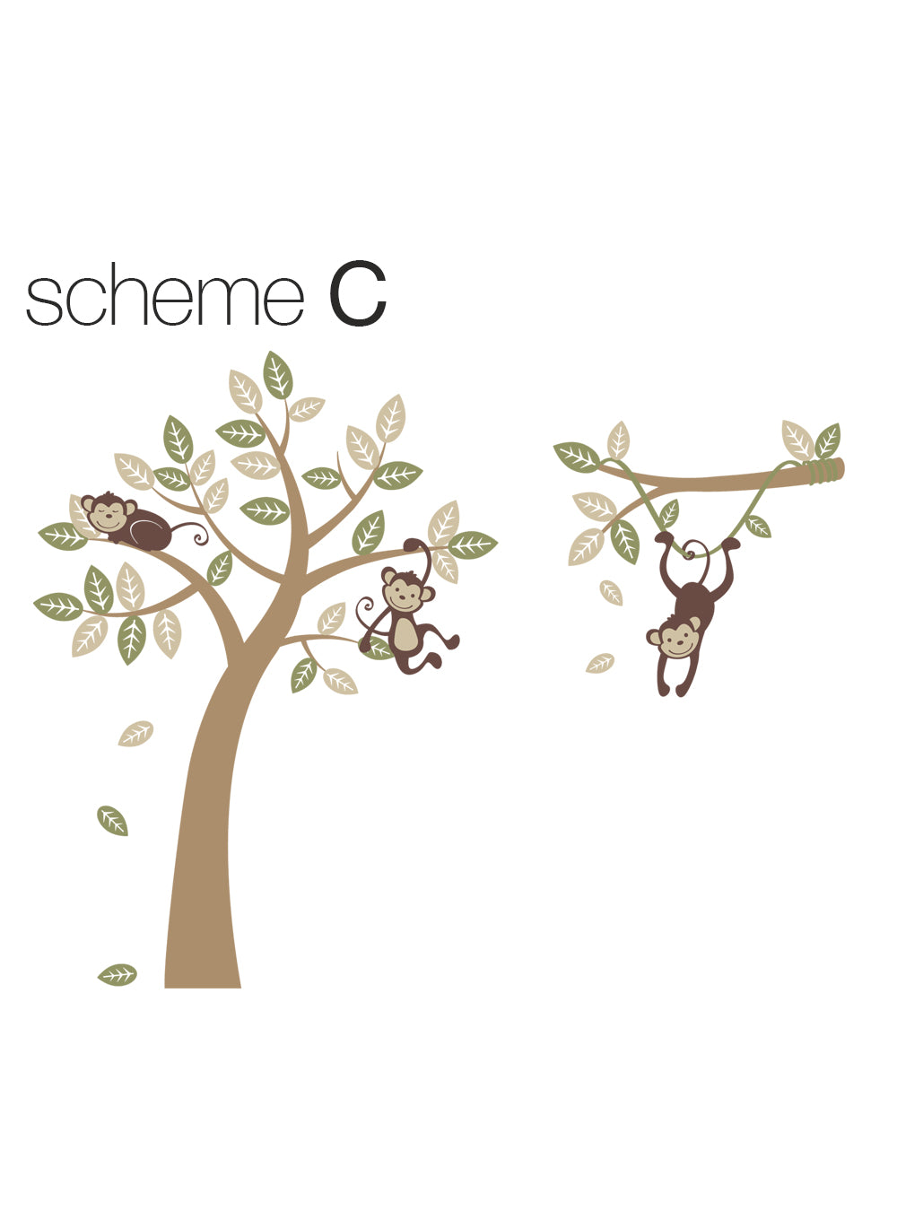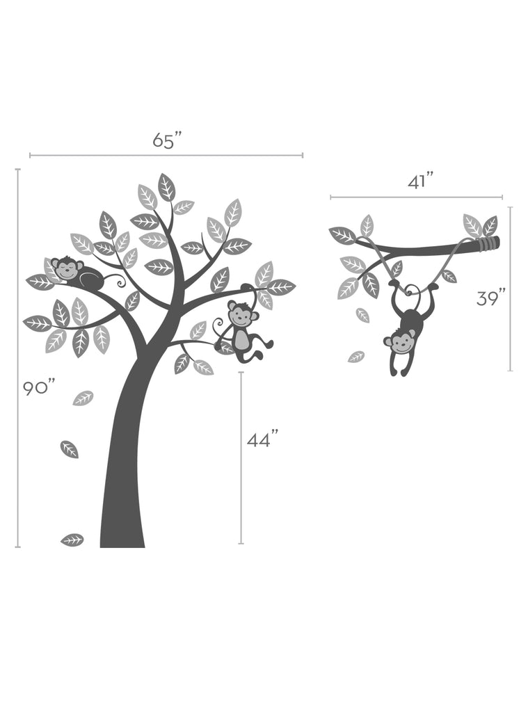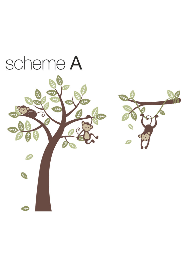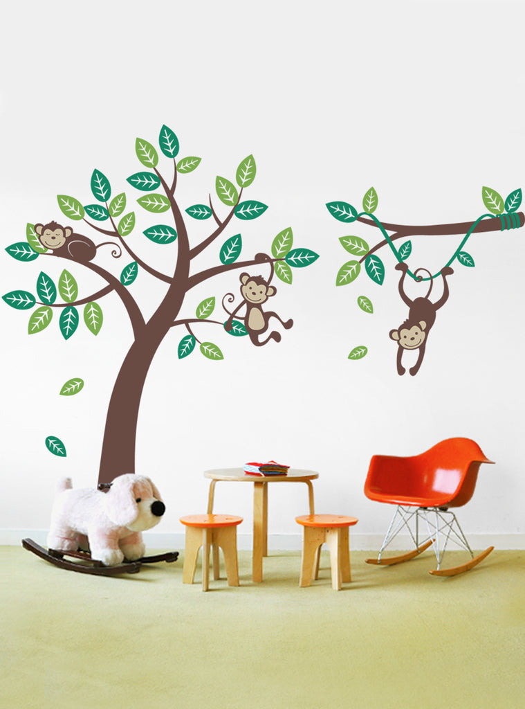 Autocollant d'arbre à trois singes avec branche de vigne