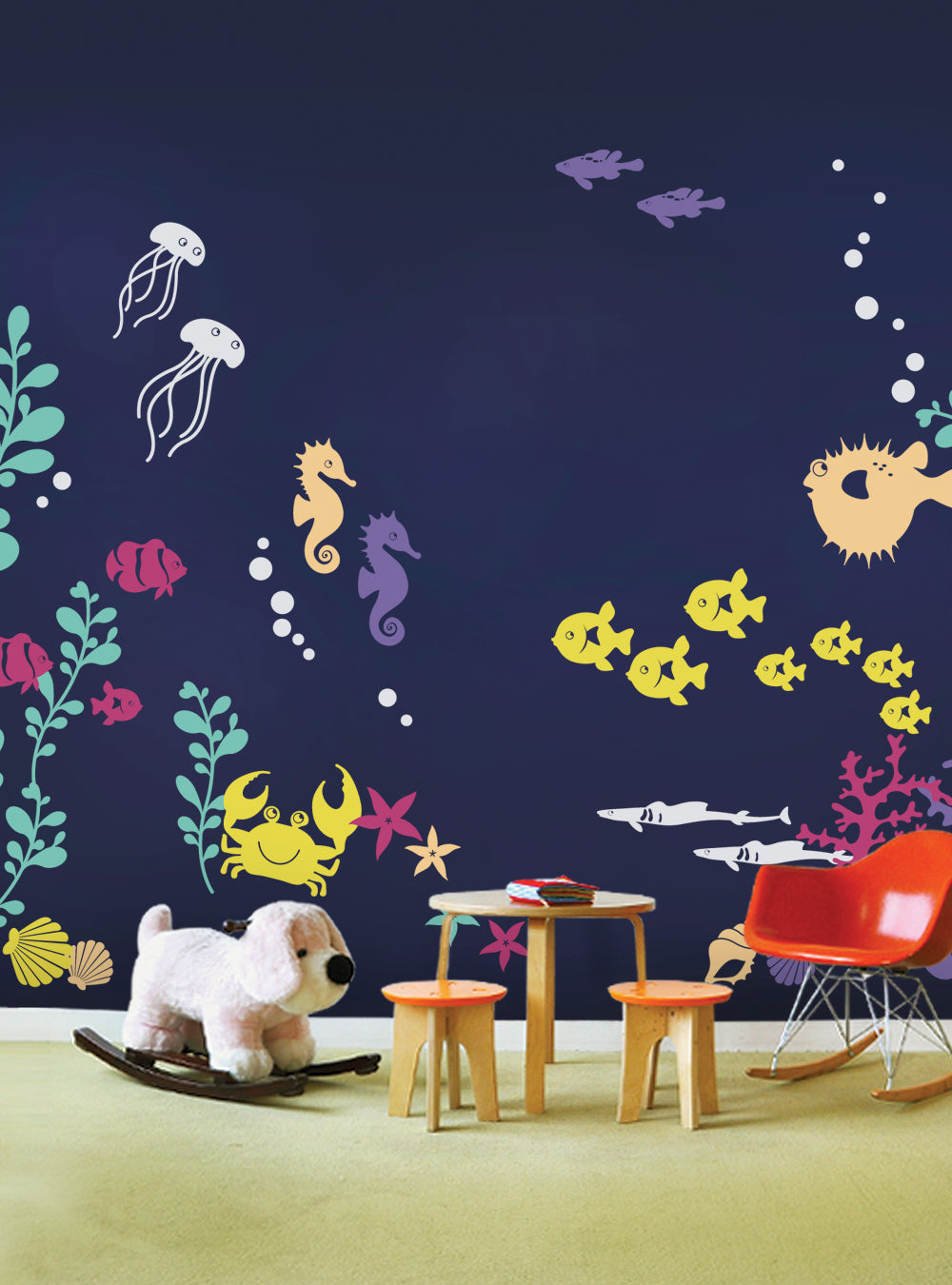 Créez un aquarium marin sous-marin dans votre chambre de bébé ou votre salle de jeux pour enfants avec nos stickers muraux Under the Sea. Faites découvrir à votre enfant les merveilles de la vie marine.