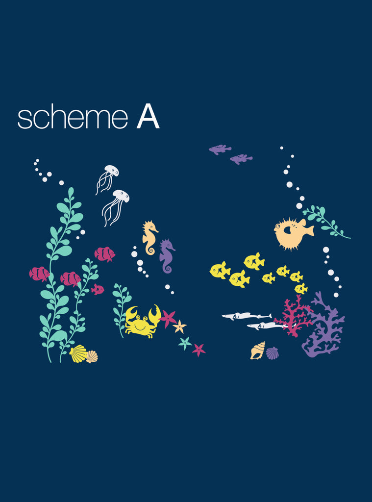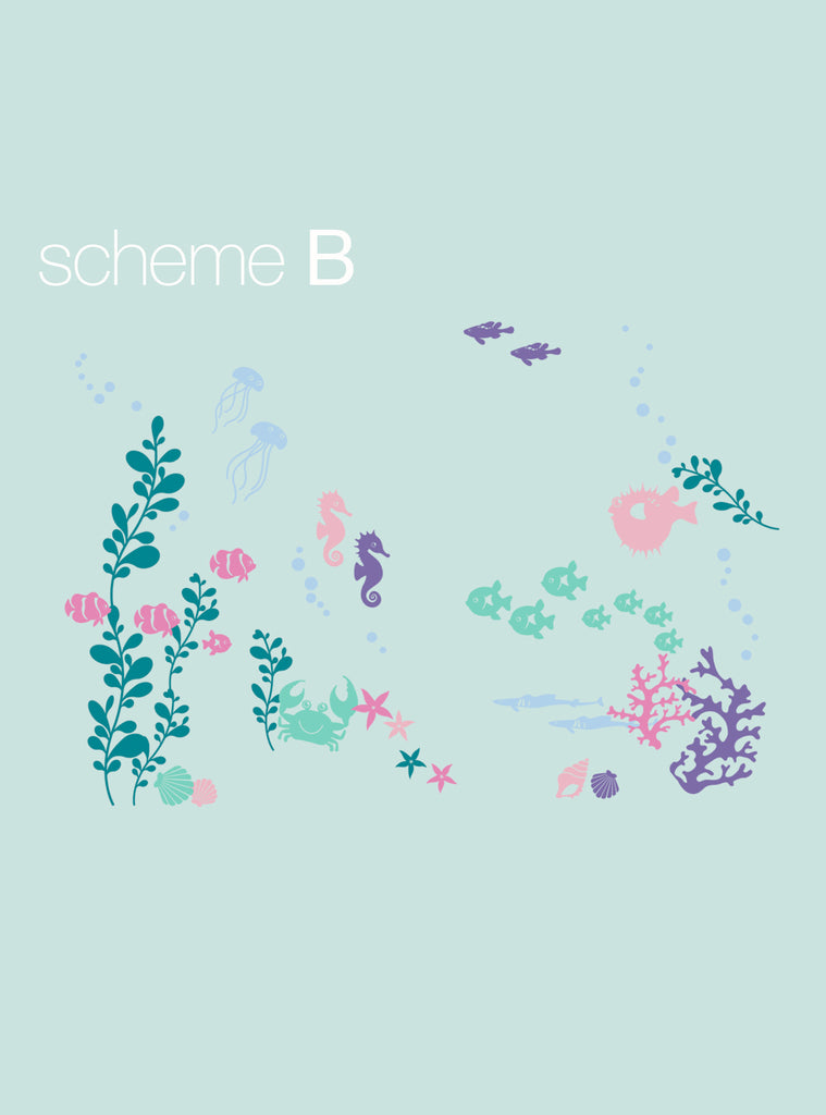 > Couleur B (Groupe de 4 poissons, 2 étoiles de mer et un corail) : Choisissez 1 couleur