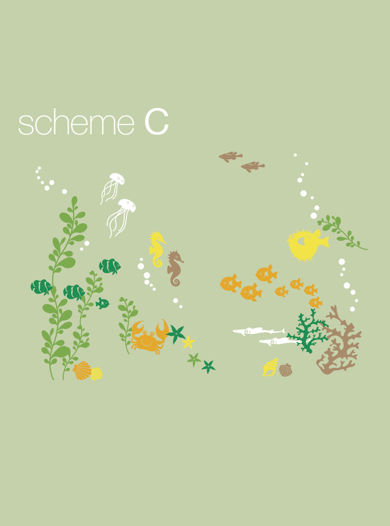 > Couleur C (2 coquillages, une étoile de mer, un hippocampe et un poisson-globe) : Choisissez 1 couleur