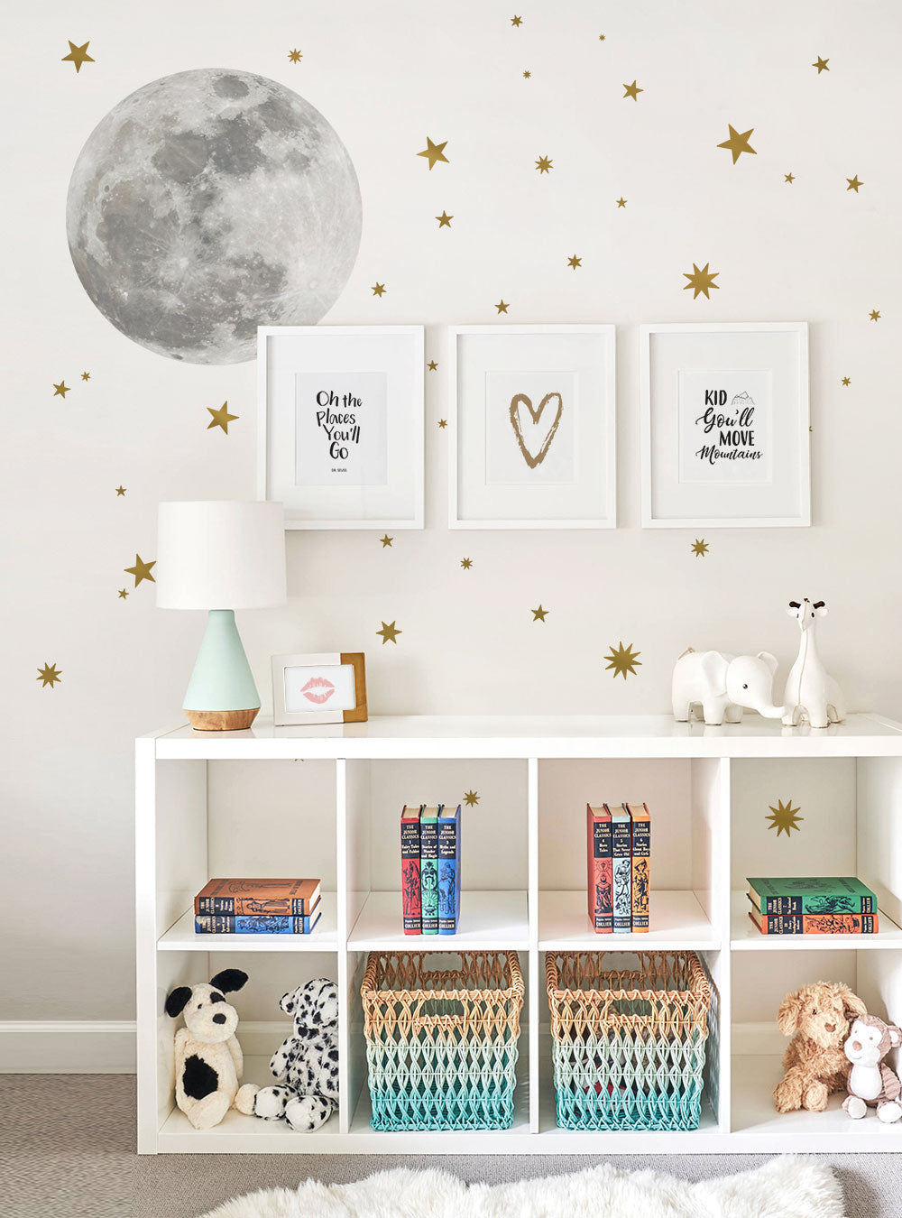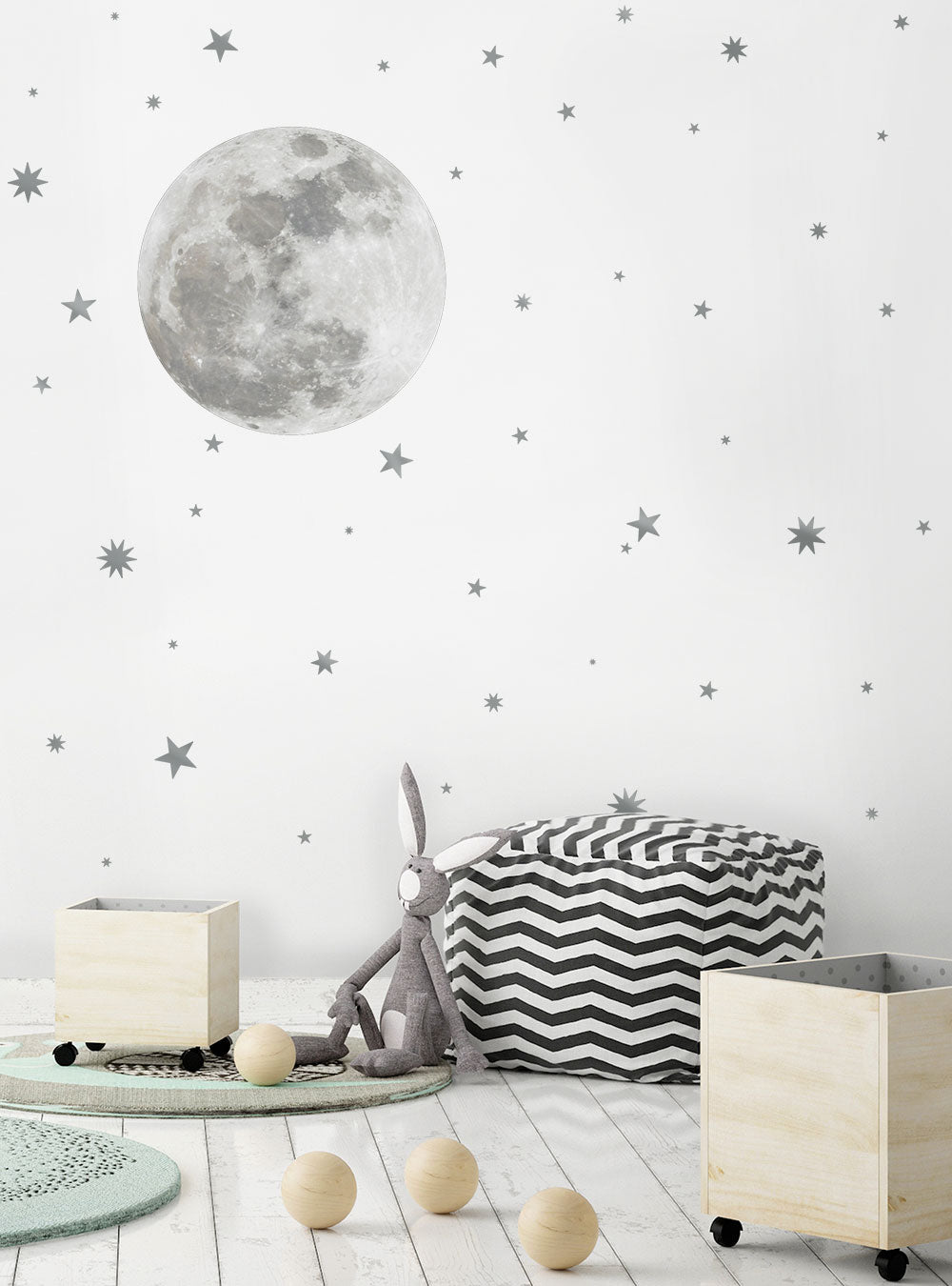 (1) Autocollant mural à décoller et à coller en forme de lune.