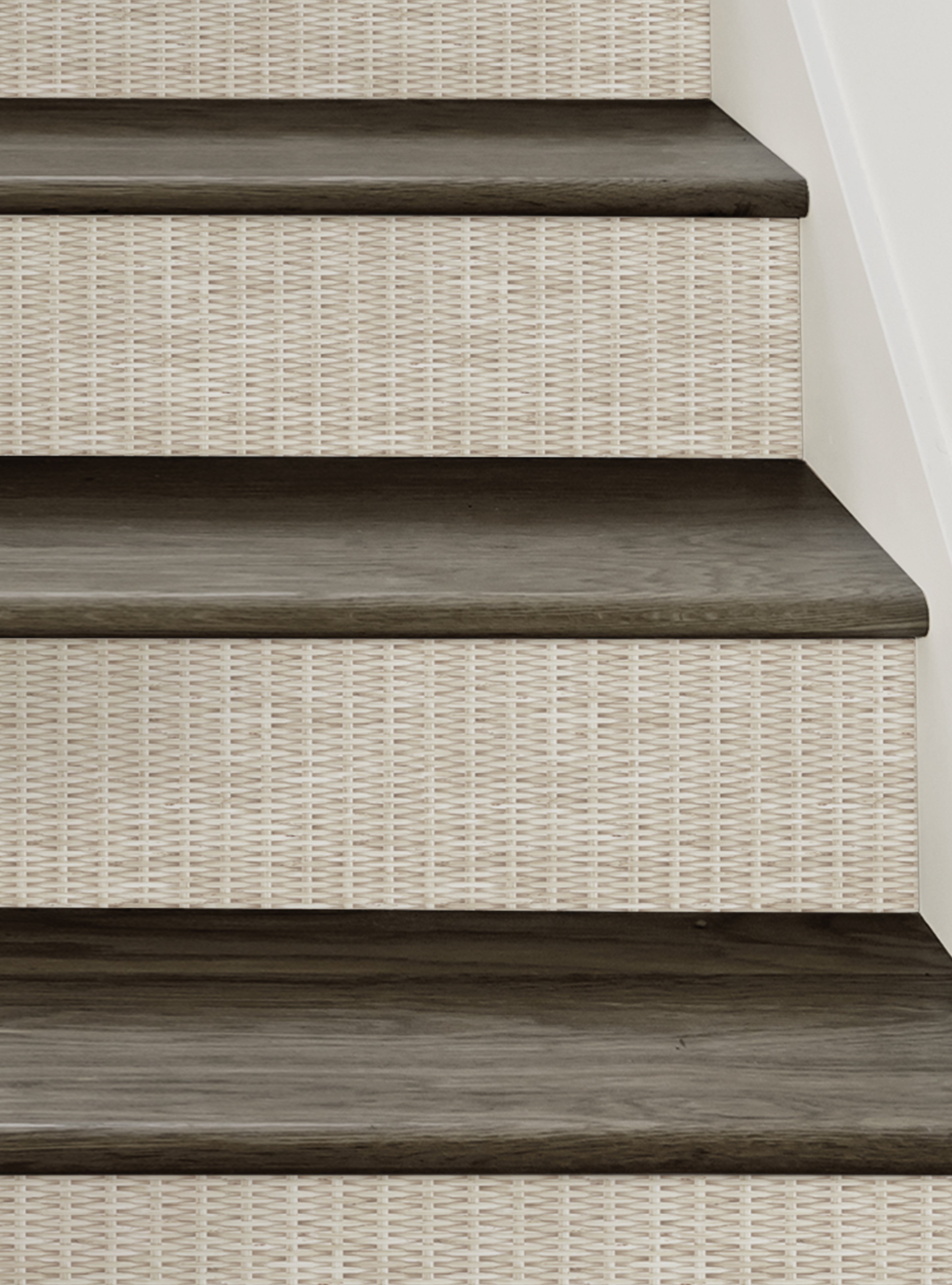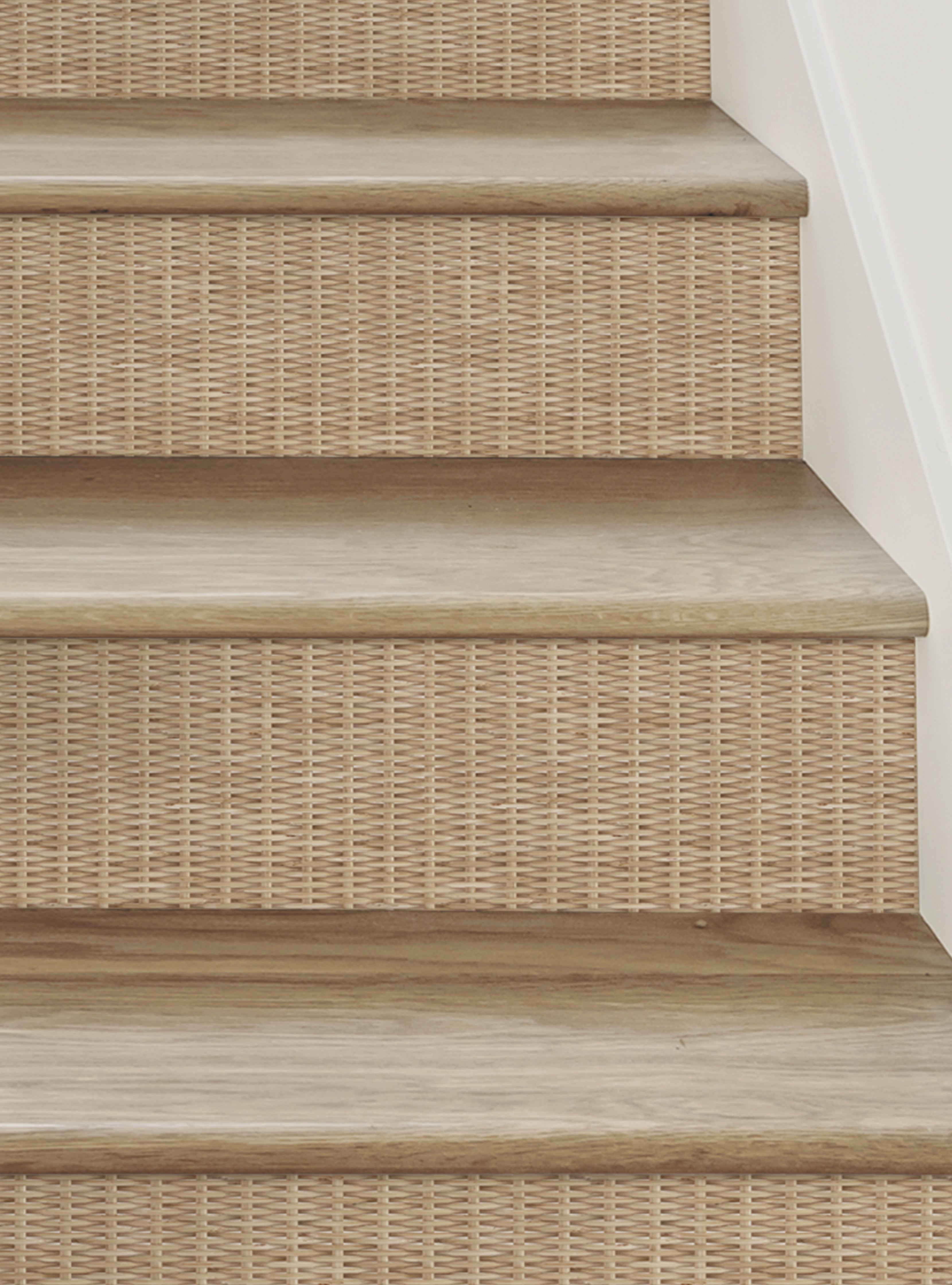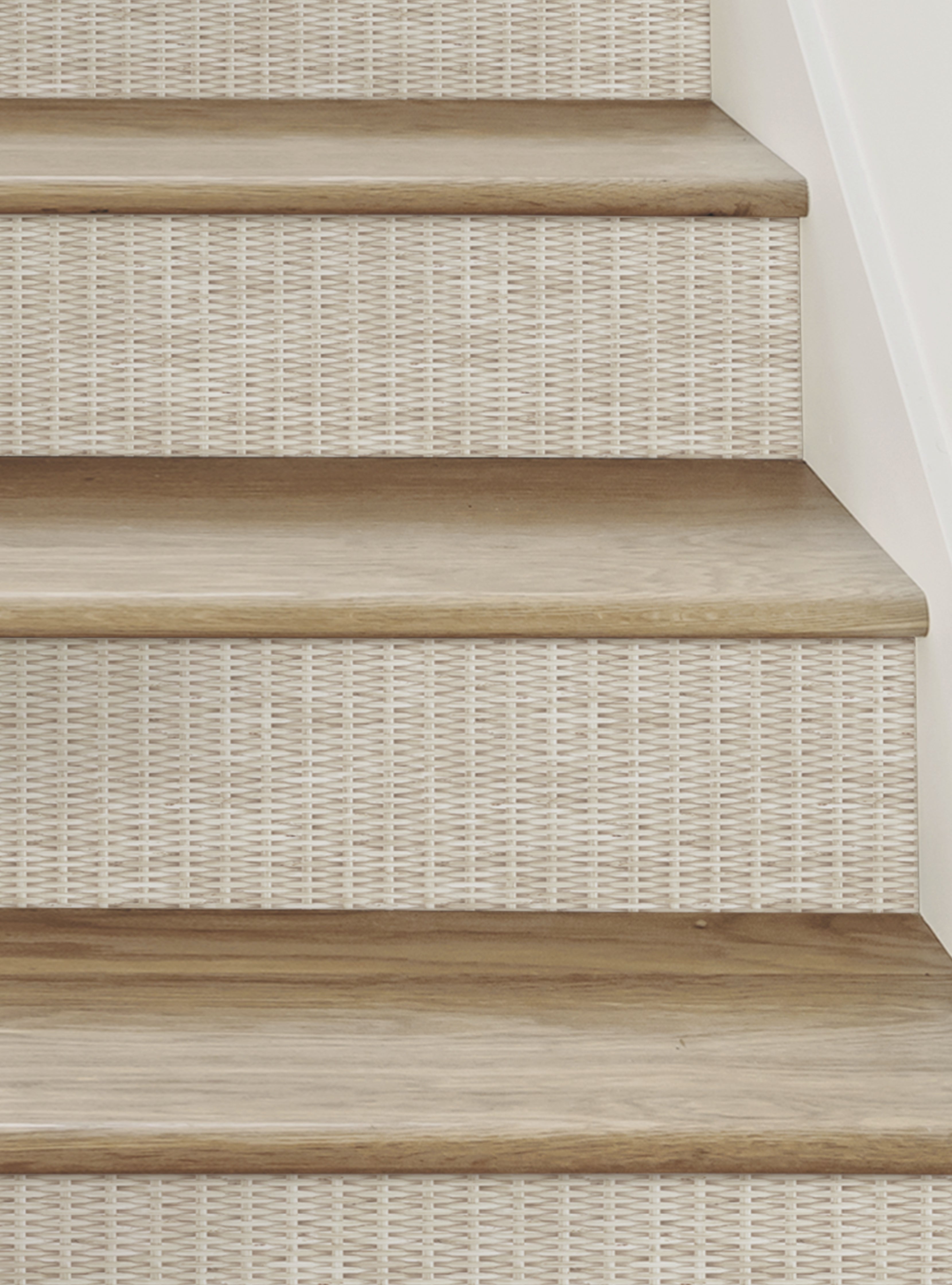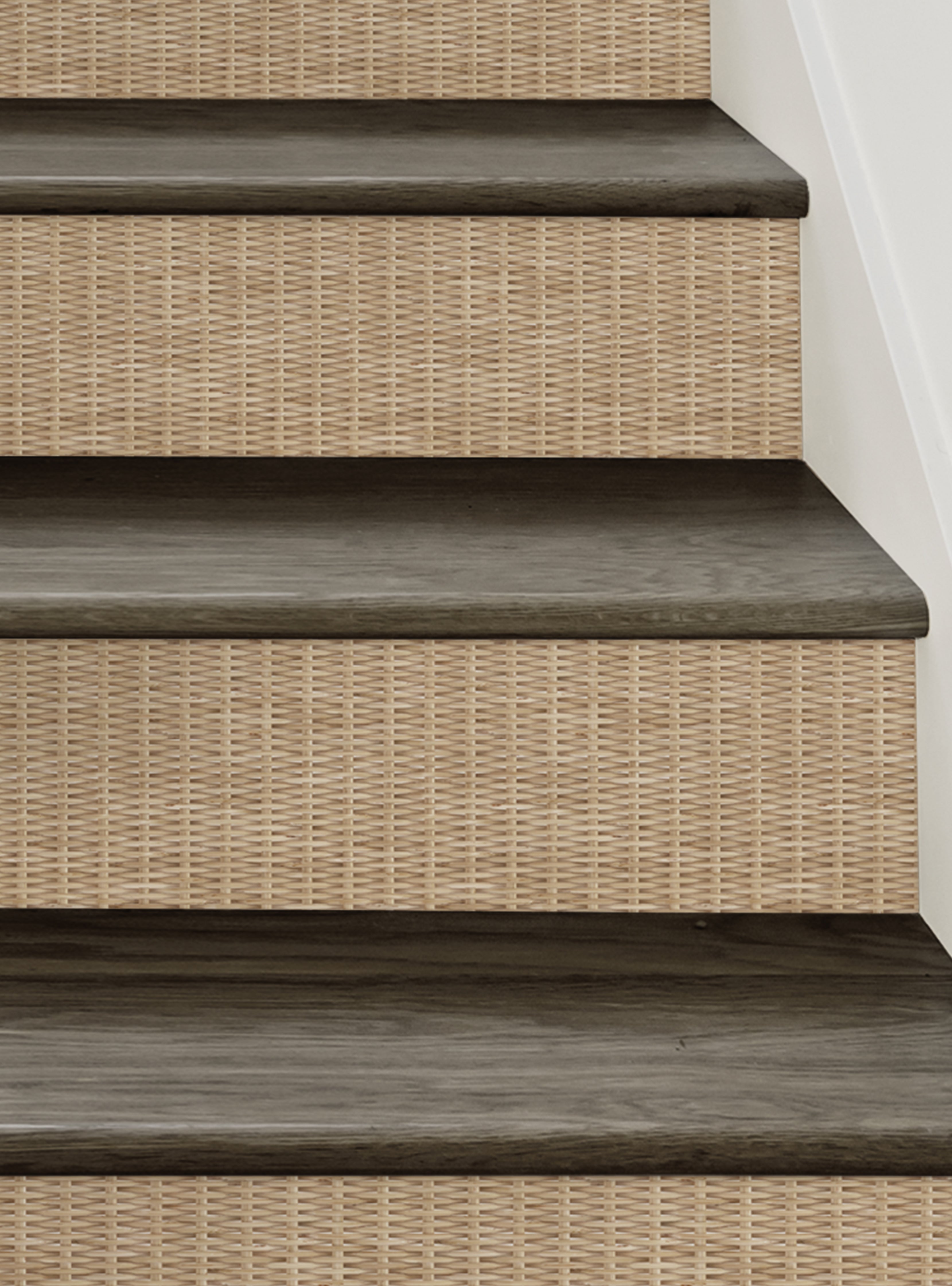 Bandes de contremarche à décoller et à coller d'aspect tissé en rotin