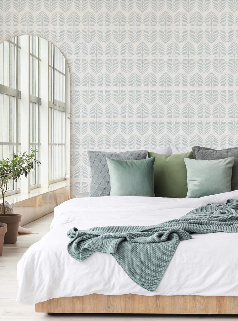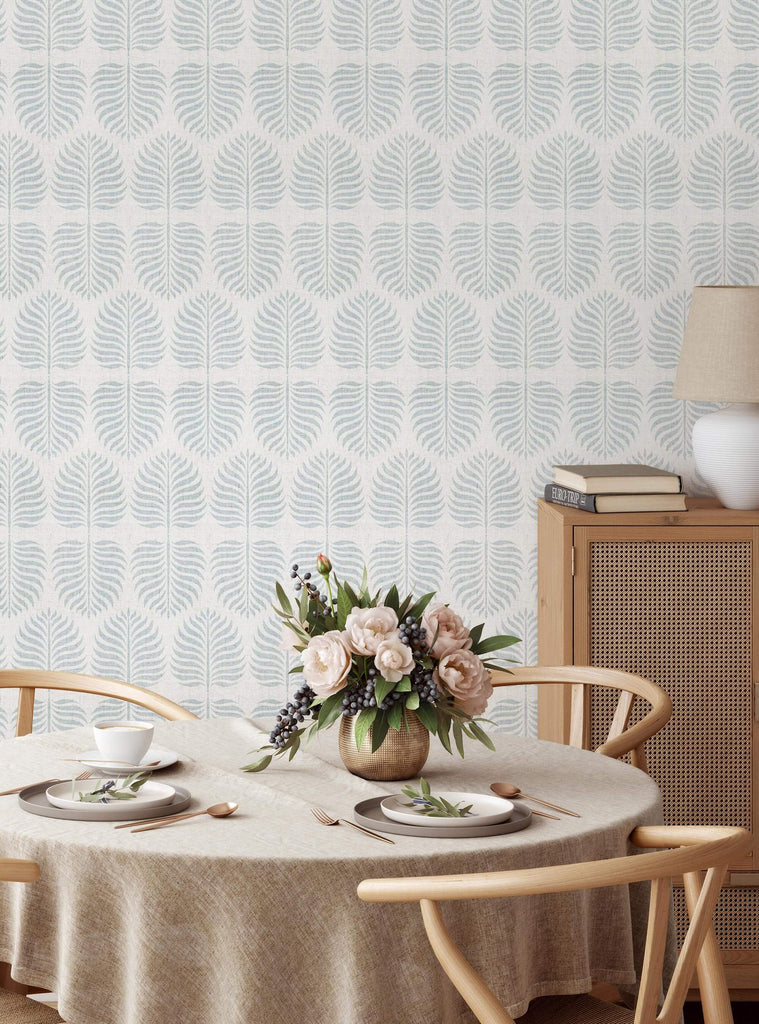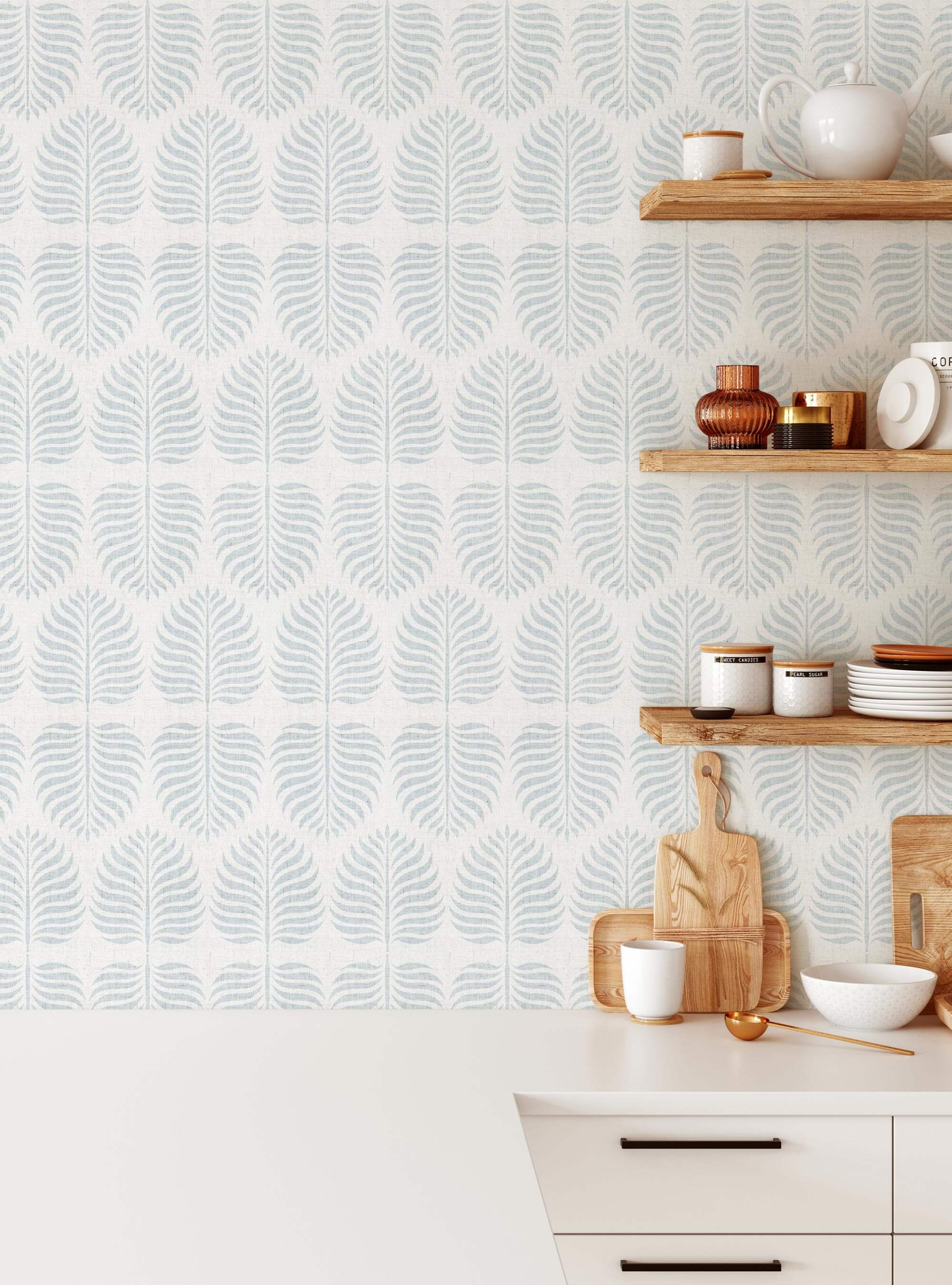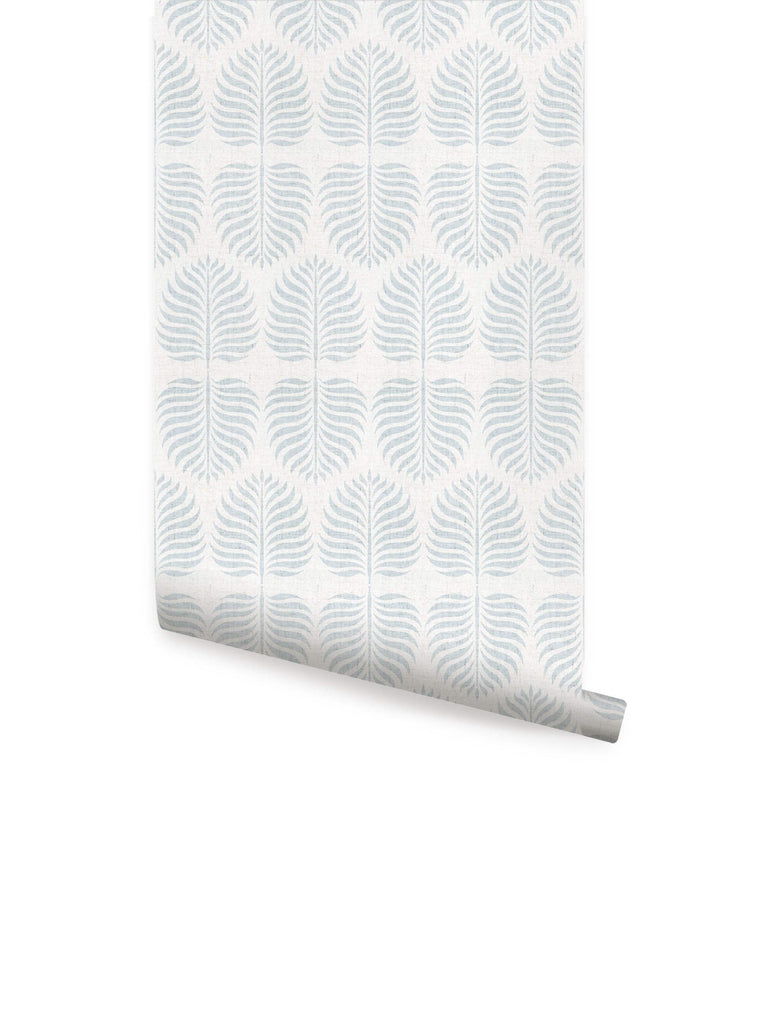 OFF Print of our Fern Pattern Blue Fabric Peel and Stick Wallpaper. 24 x 108 inches per panel.