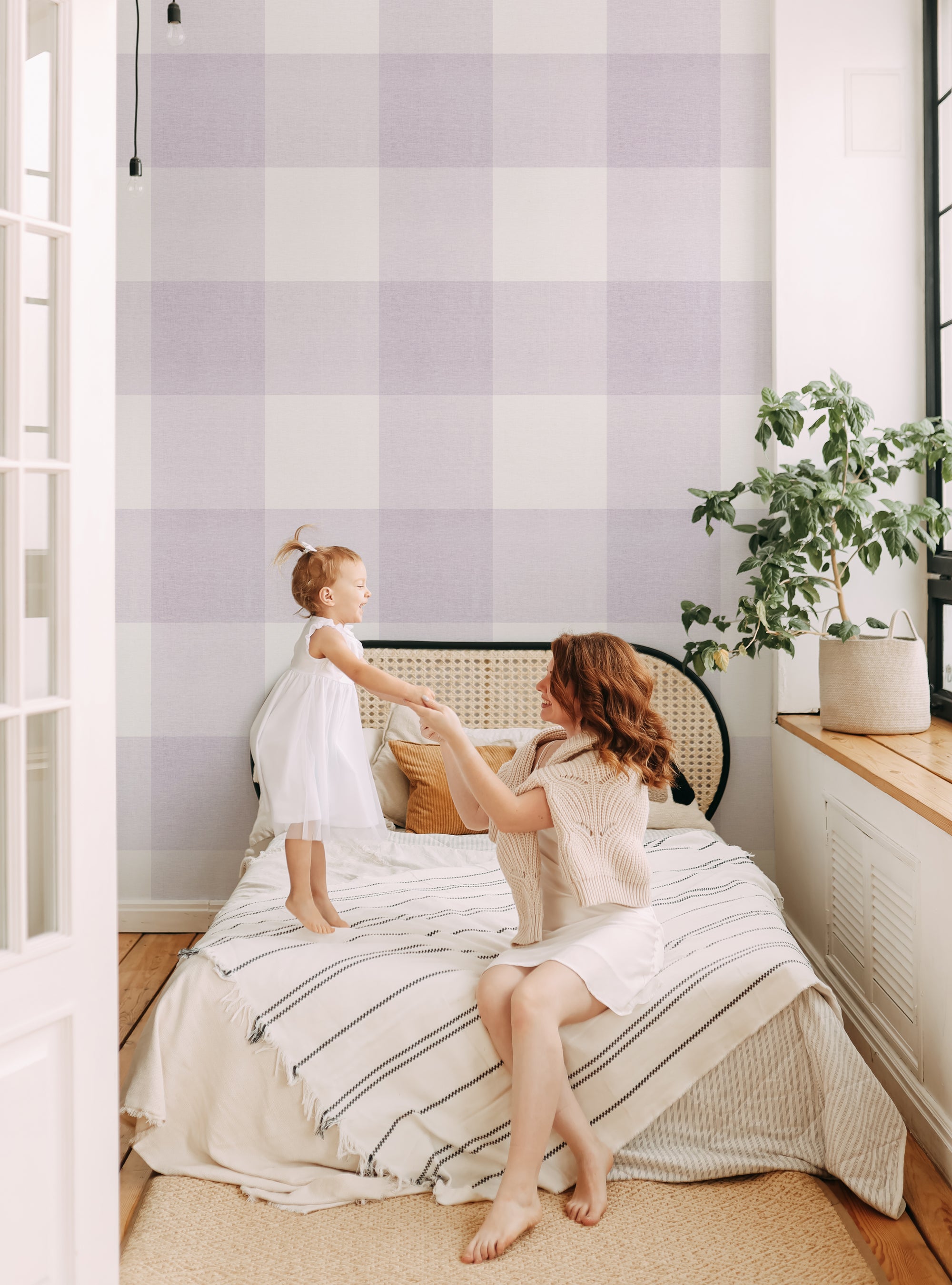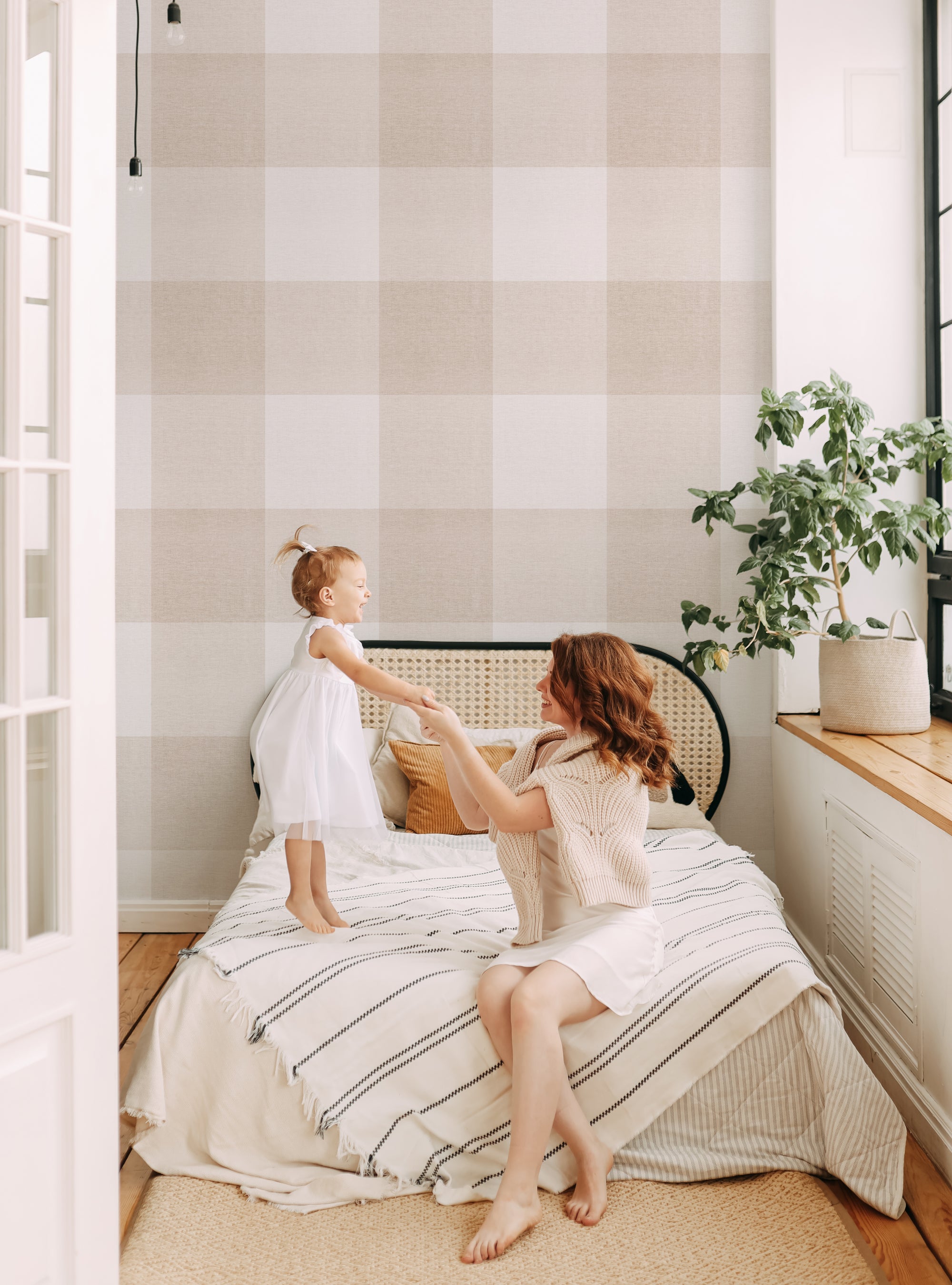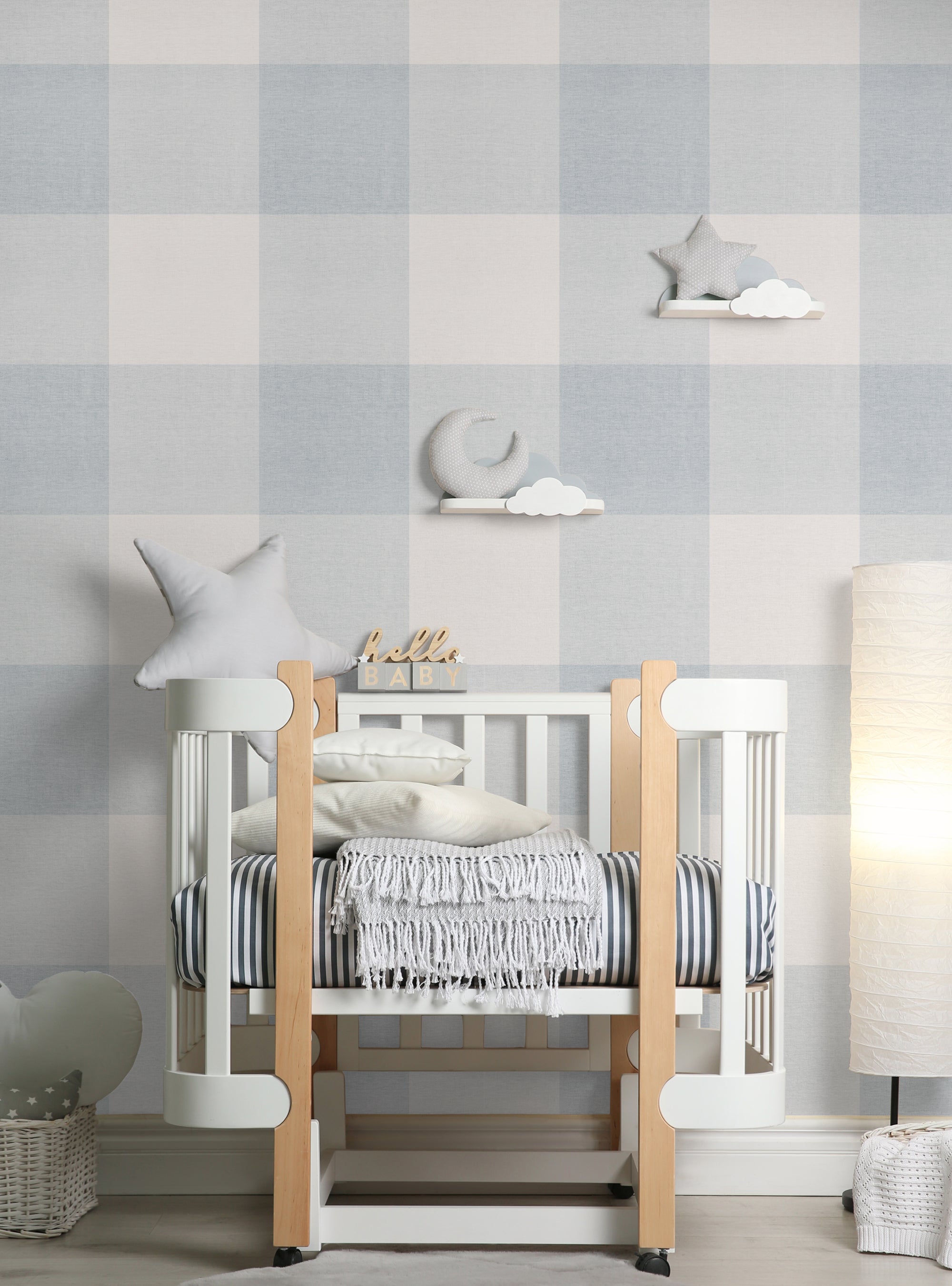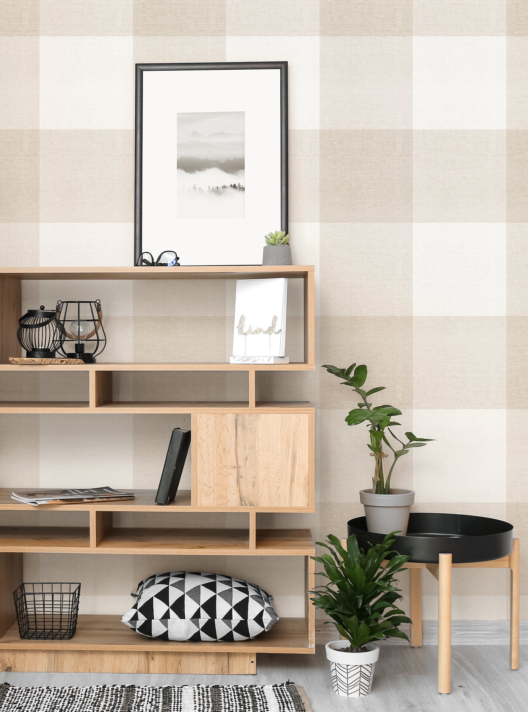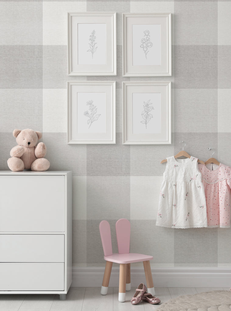 Grand papier peint à décoller et à coller aspect tissu à carreaux