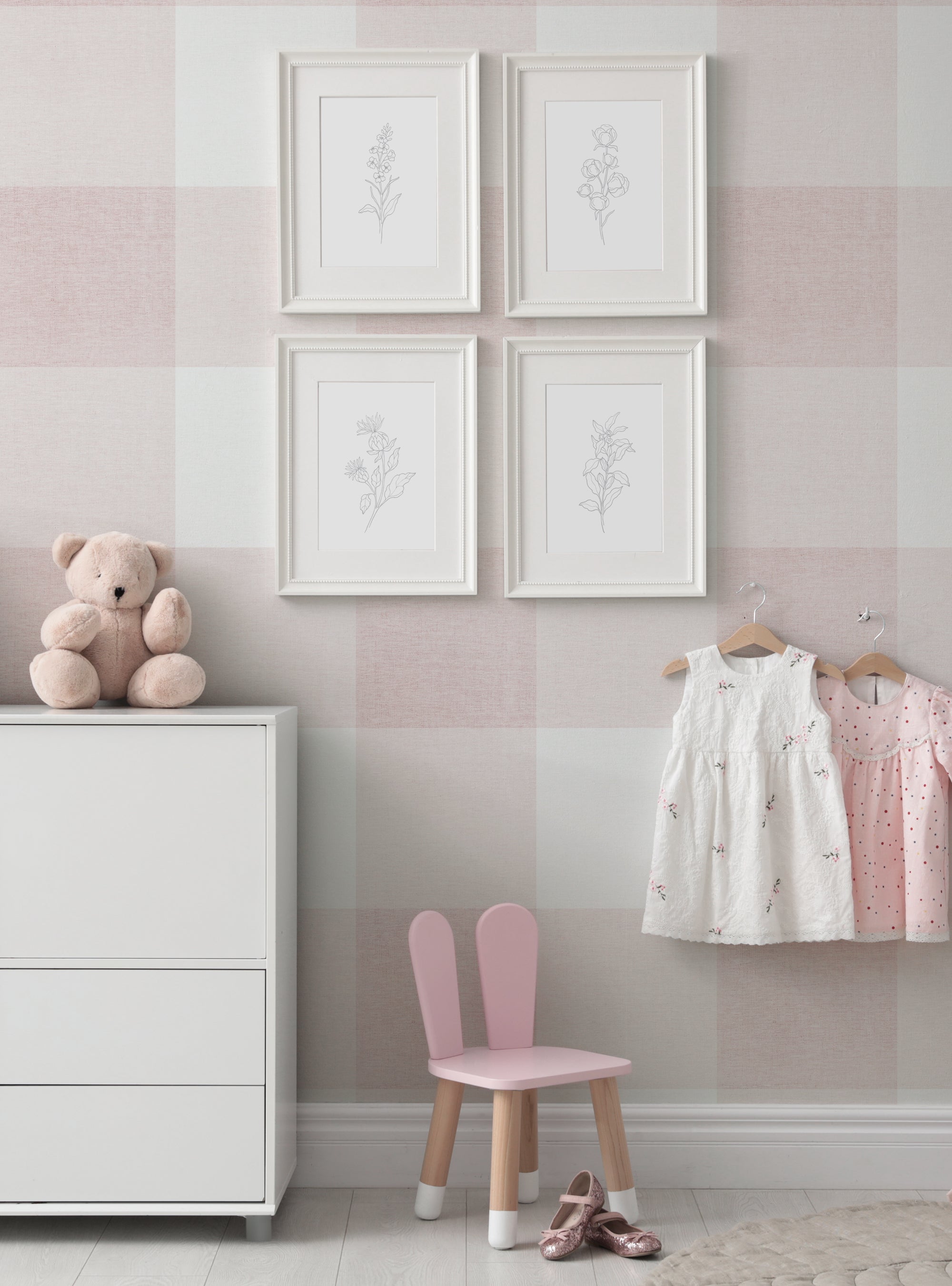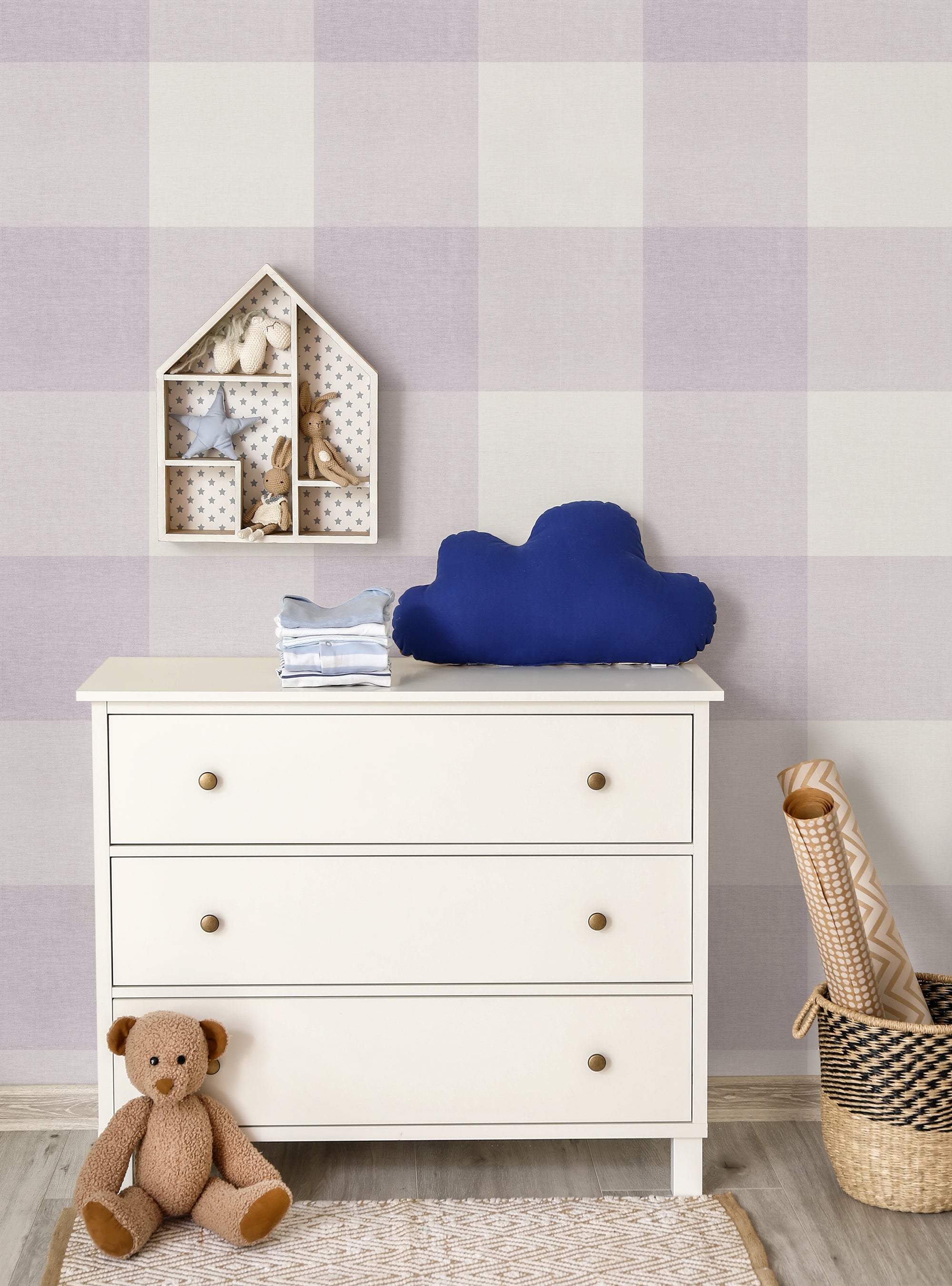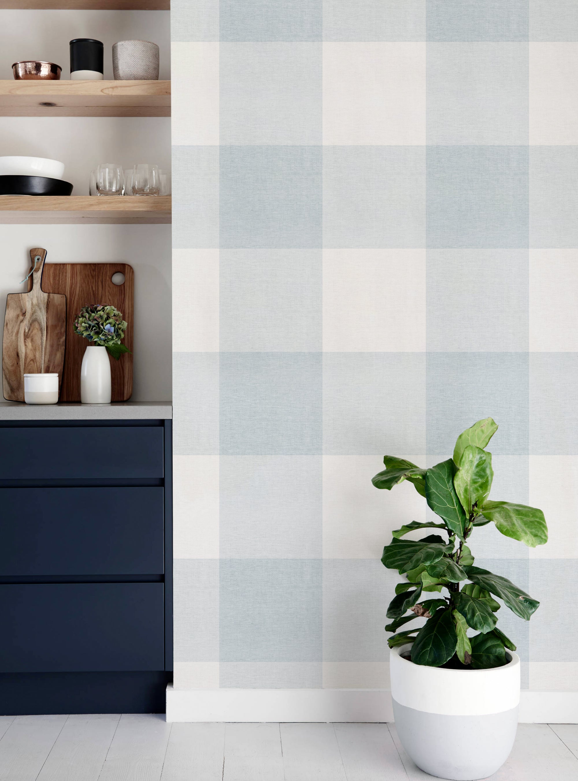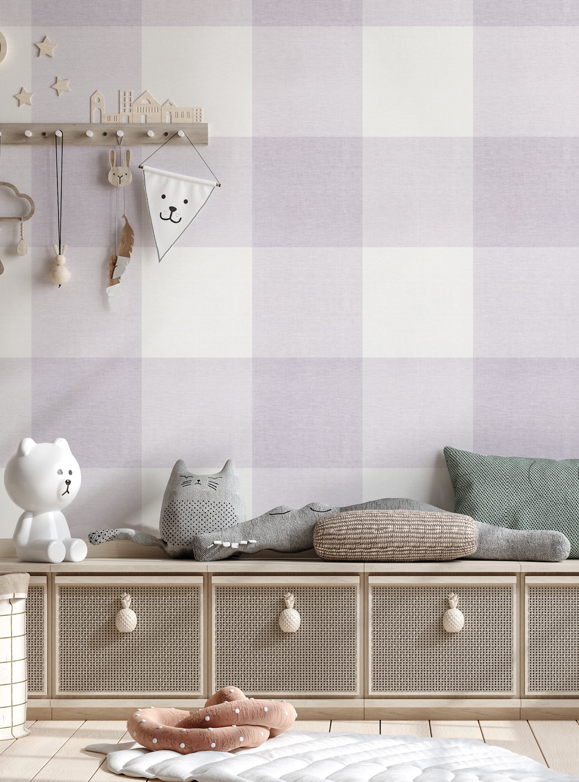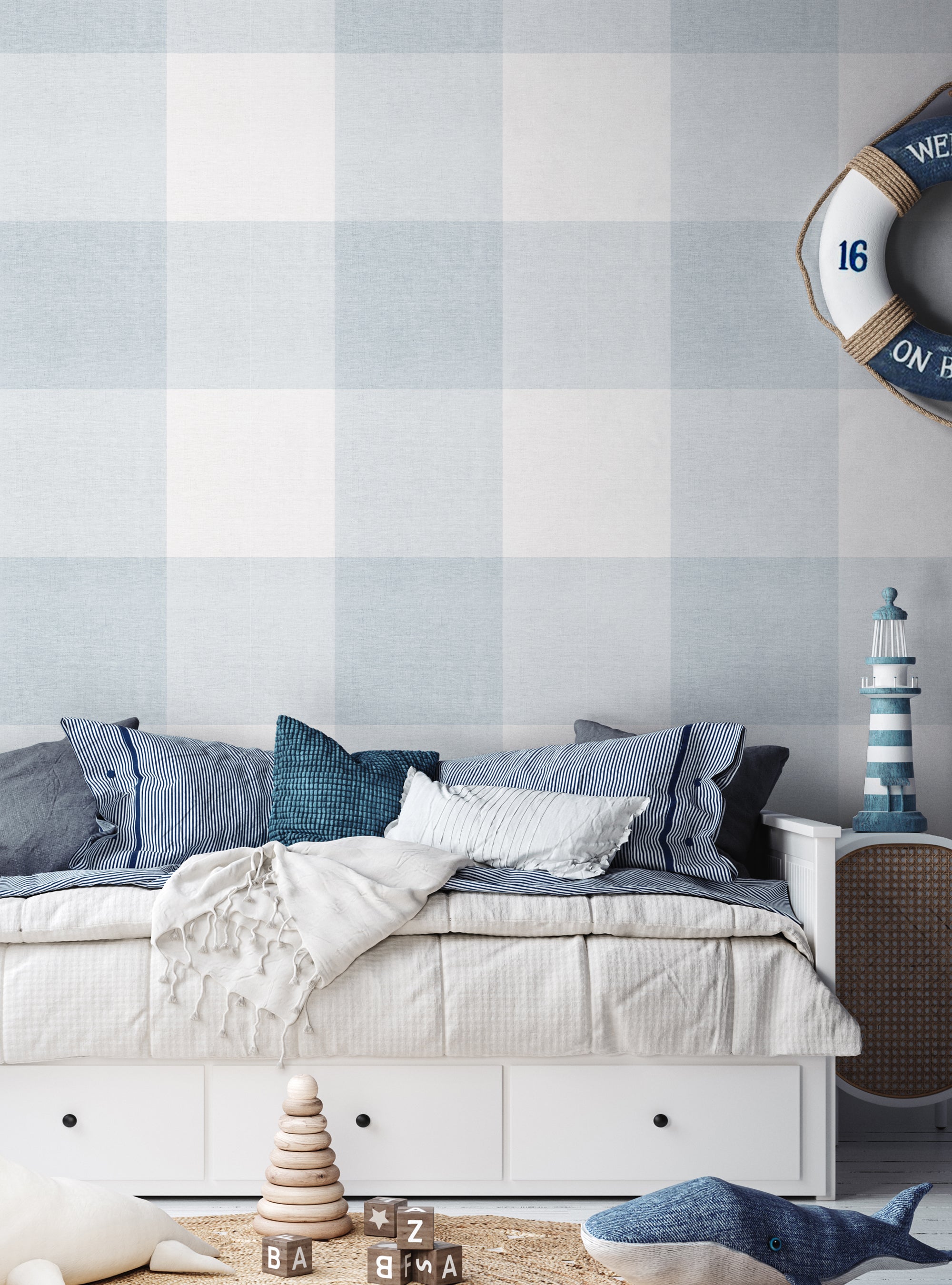 Grand papier peint à décoller et à coller aspect tissu à carreaux