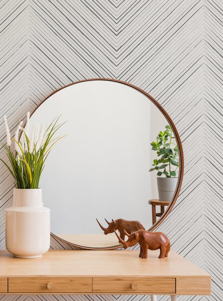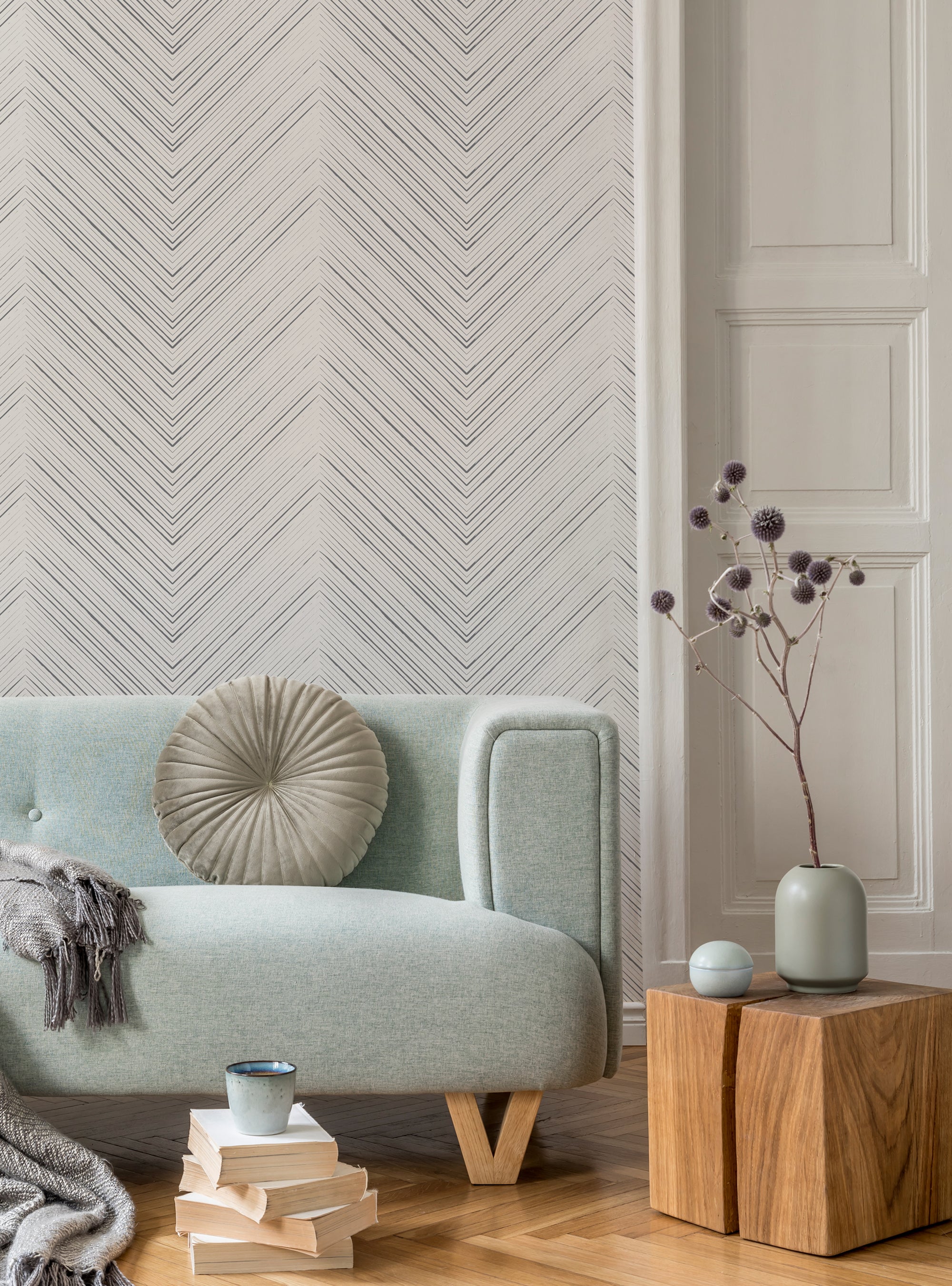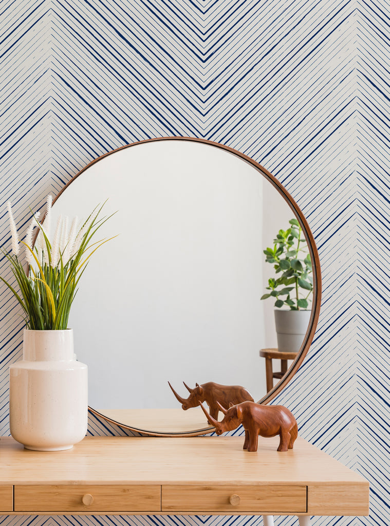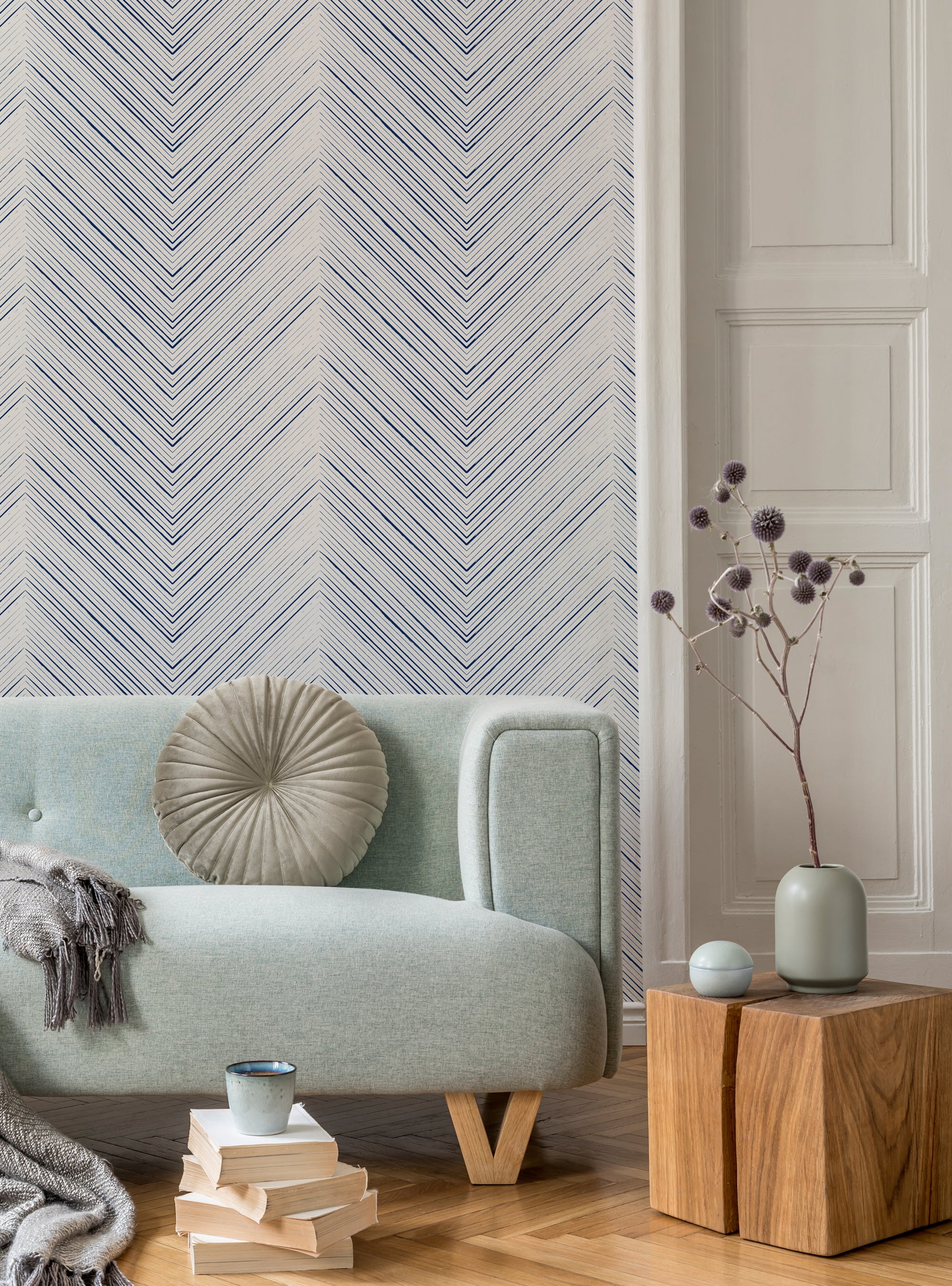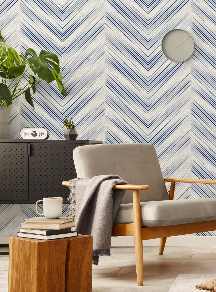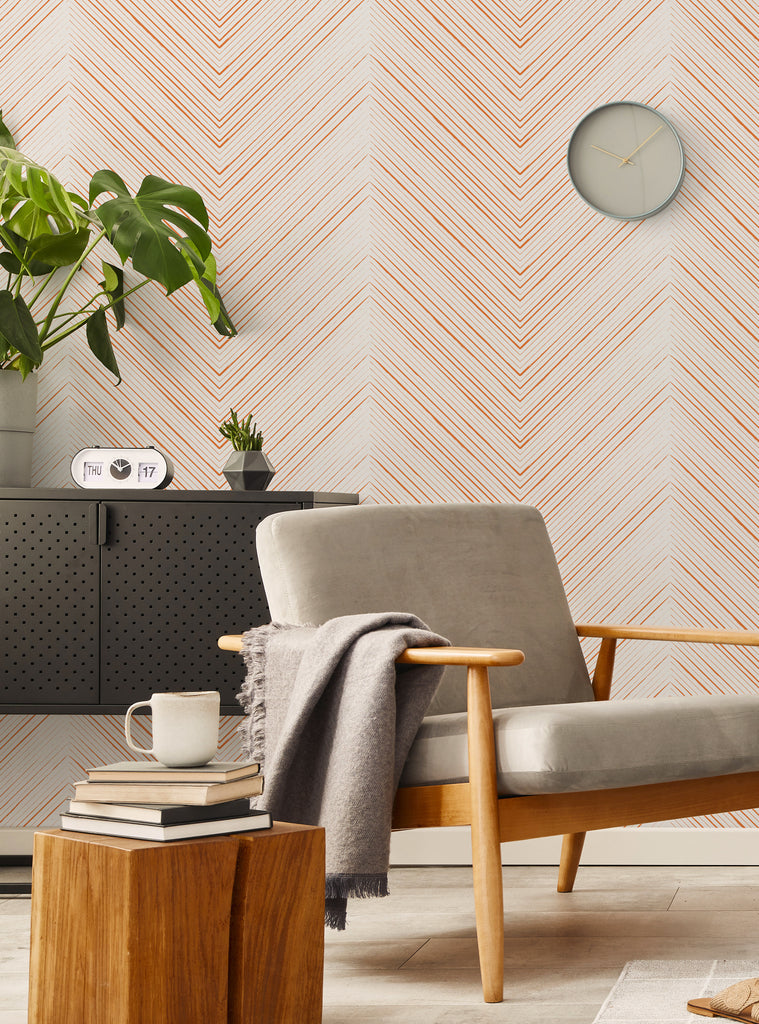 Notre papier peint autocollant Chevron Lines est un imprimé classique en zigzag qui complète n'importe quelle pièce de votre maison. Disponible en bleu marine, orange et gris.