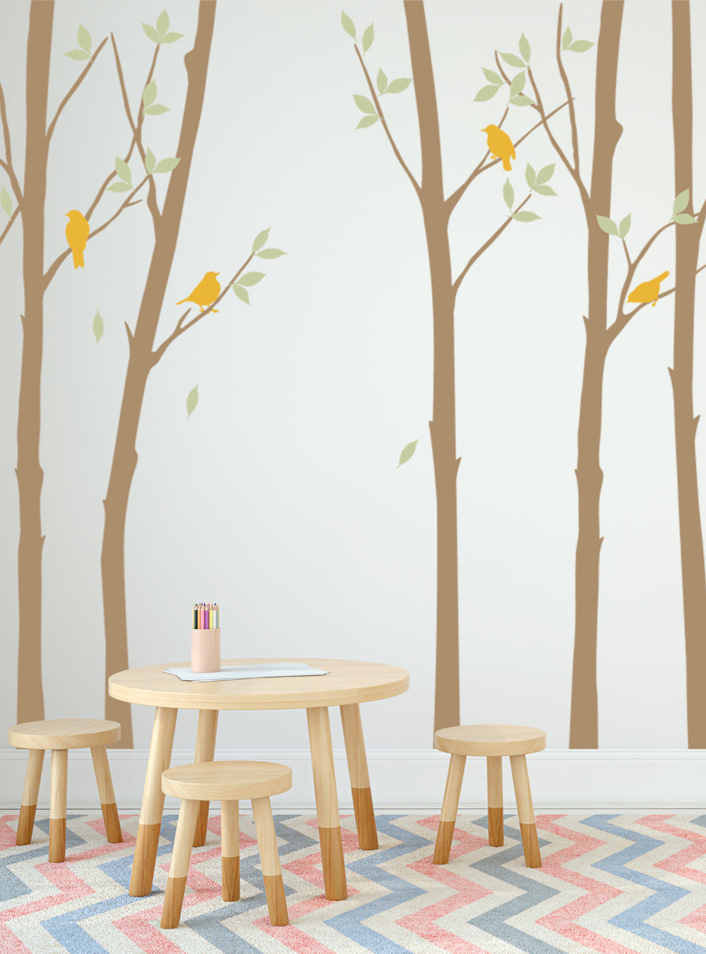 Les feuilles et les oiseaux sont tous des autocollants séparés, vous pouvez donc les disposer comme bon vous semble !