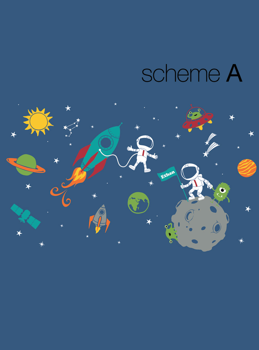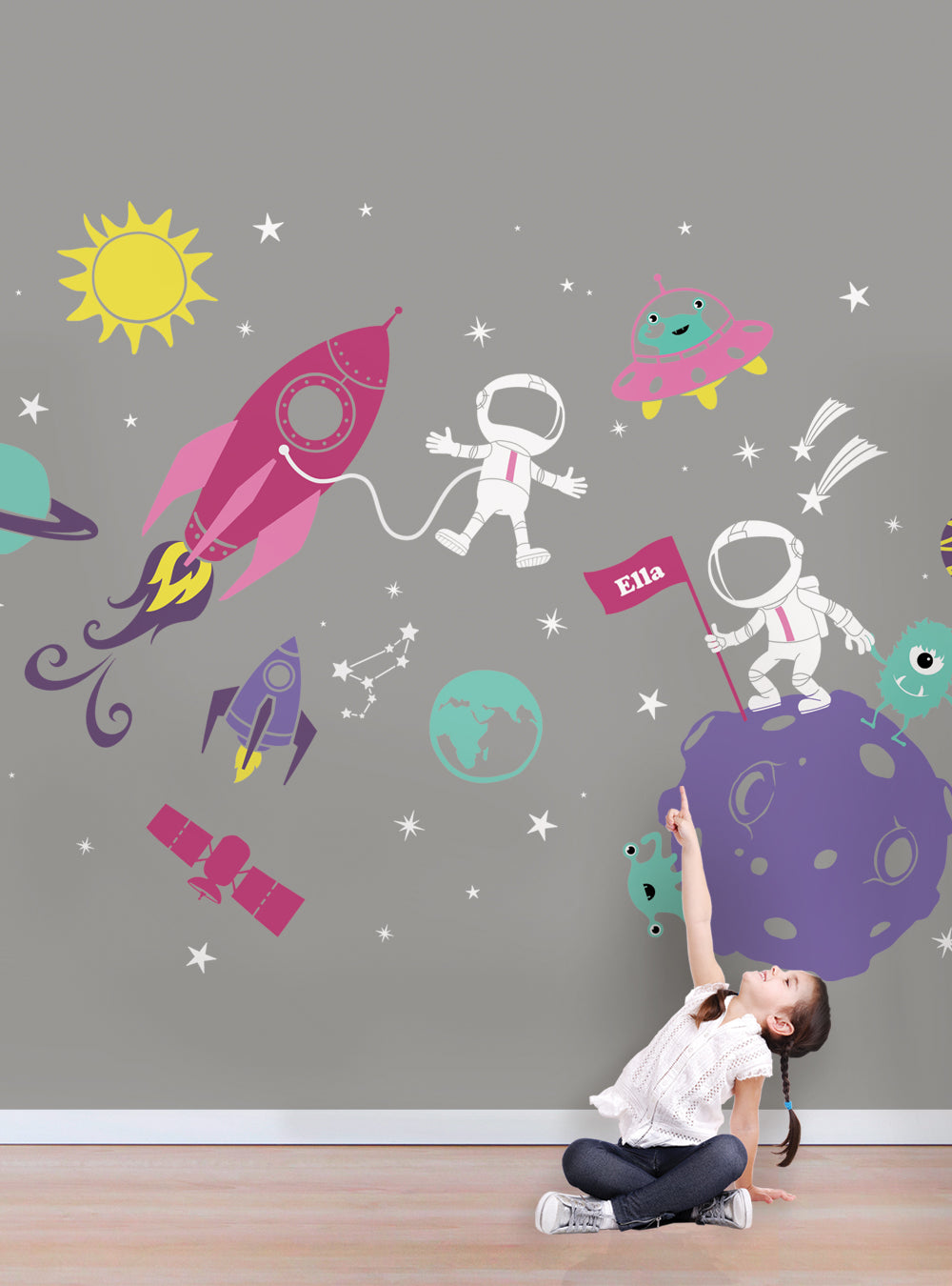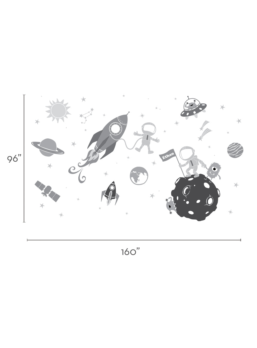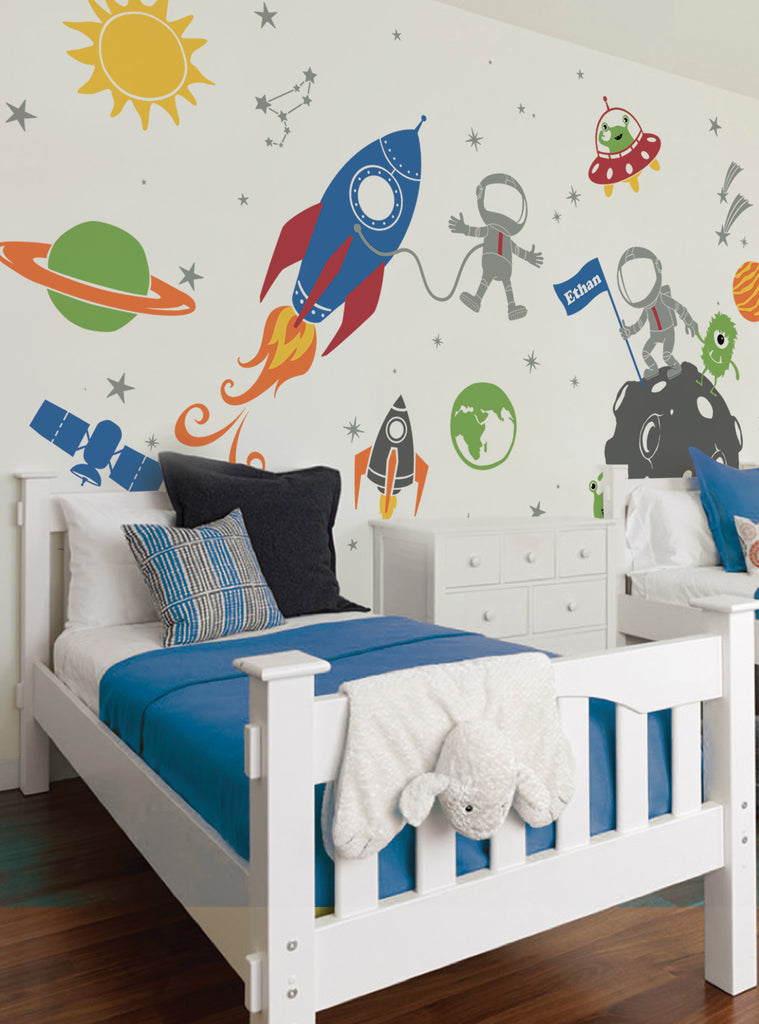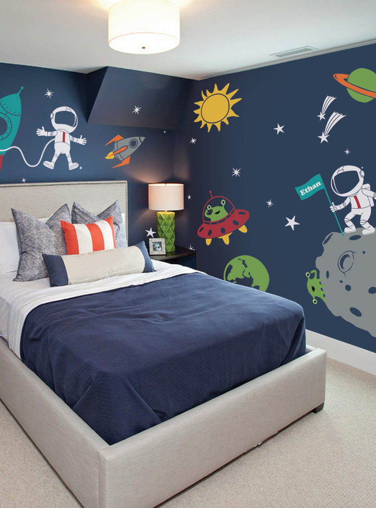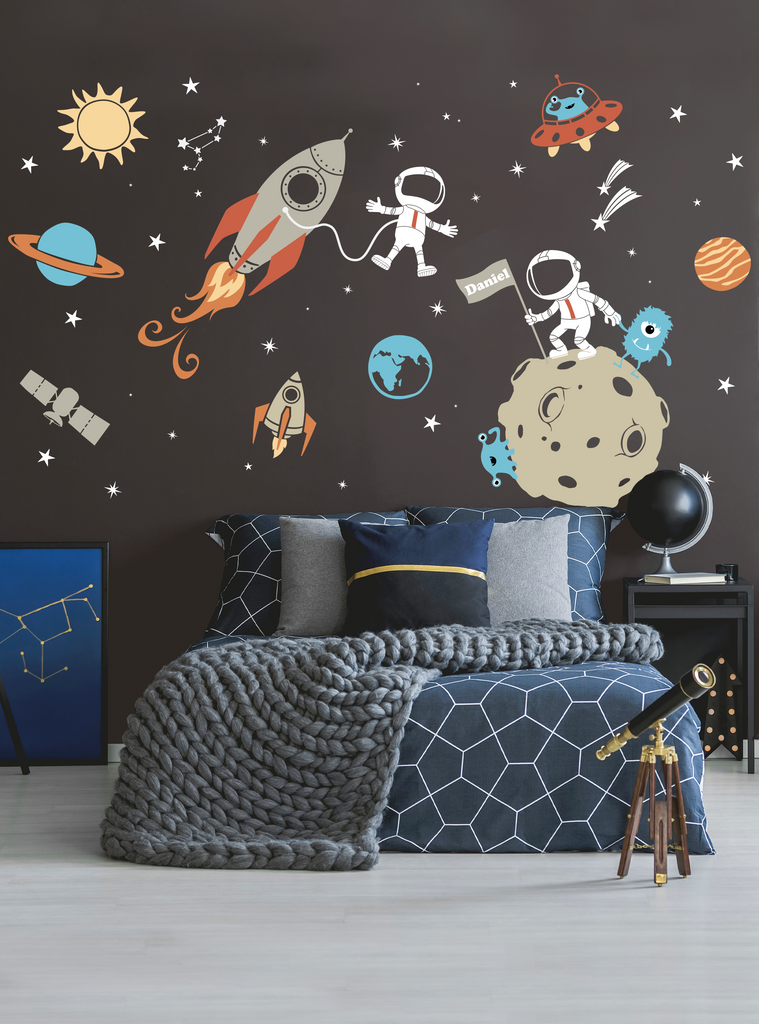 Décalcomanies murales de l'espace extra-atmosphérique par Simple Shapes® Fabriquées à partir de notre vinyle mat amovible de qualité supérieure. Transformez la chambre de votre enfant en une expérience spatiale amusante !