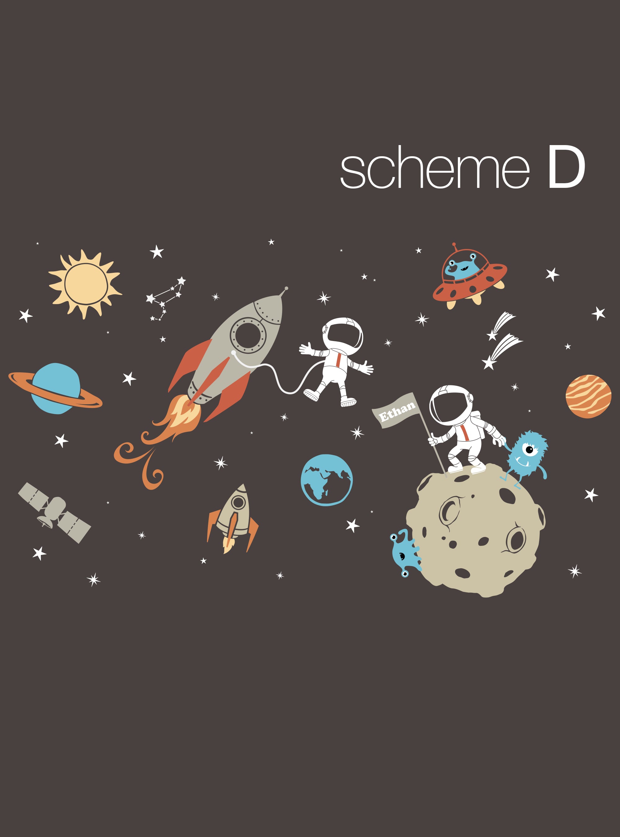 > Couleur D (Soleil, Flamme, Parties du vaisseau spatial et motif de la petite planète) : Choisissez 1 couleur