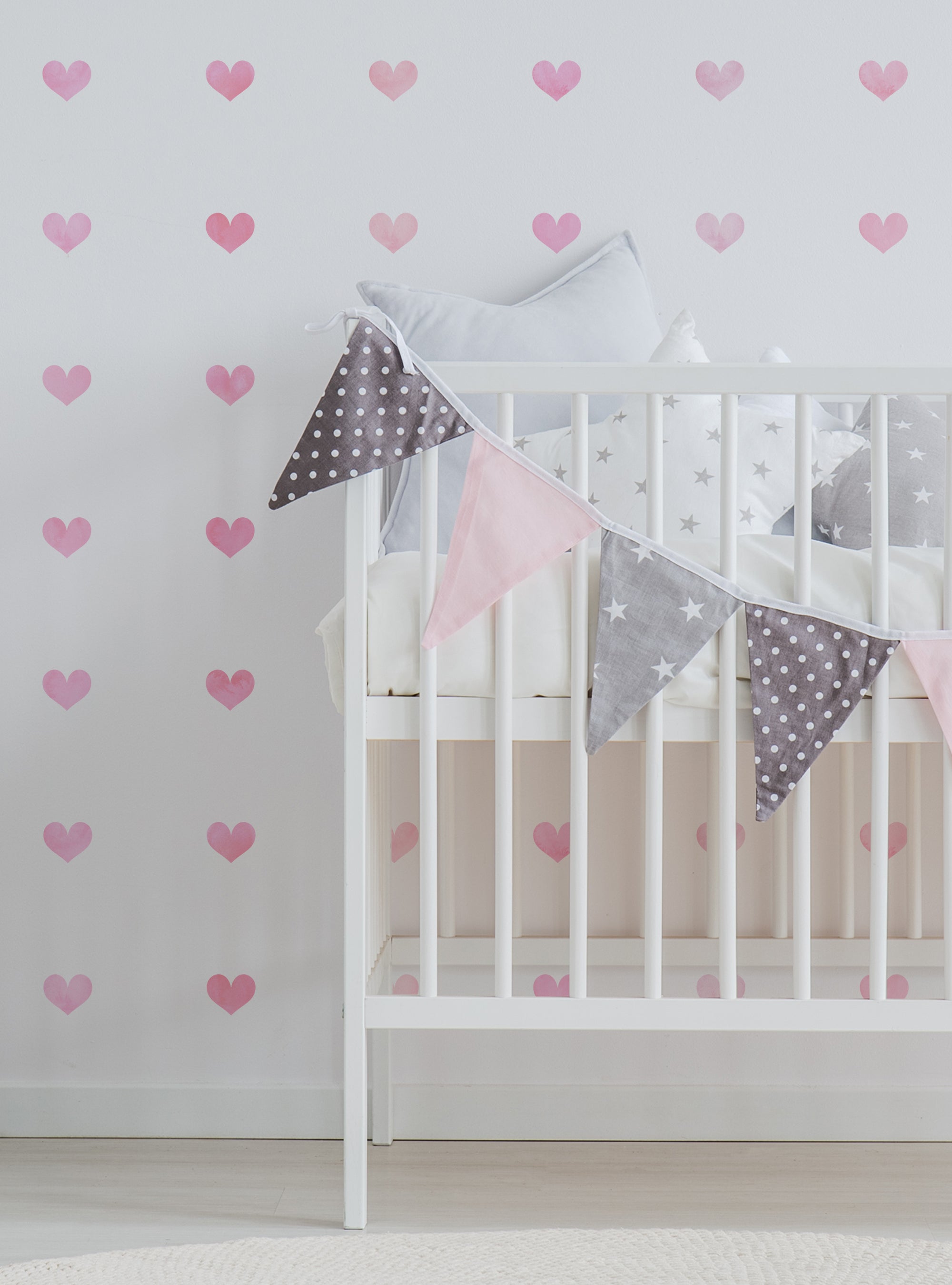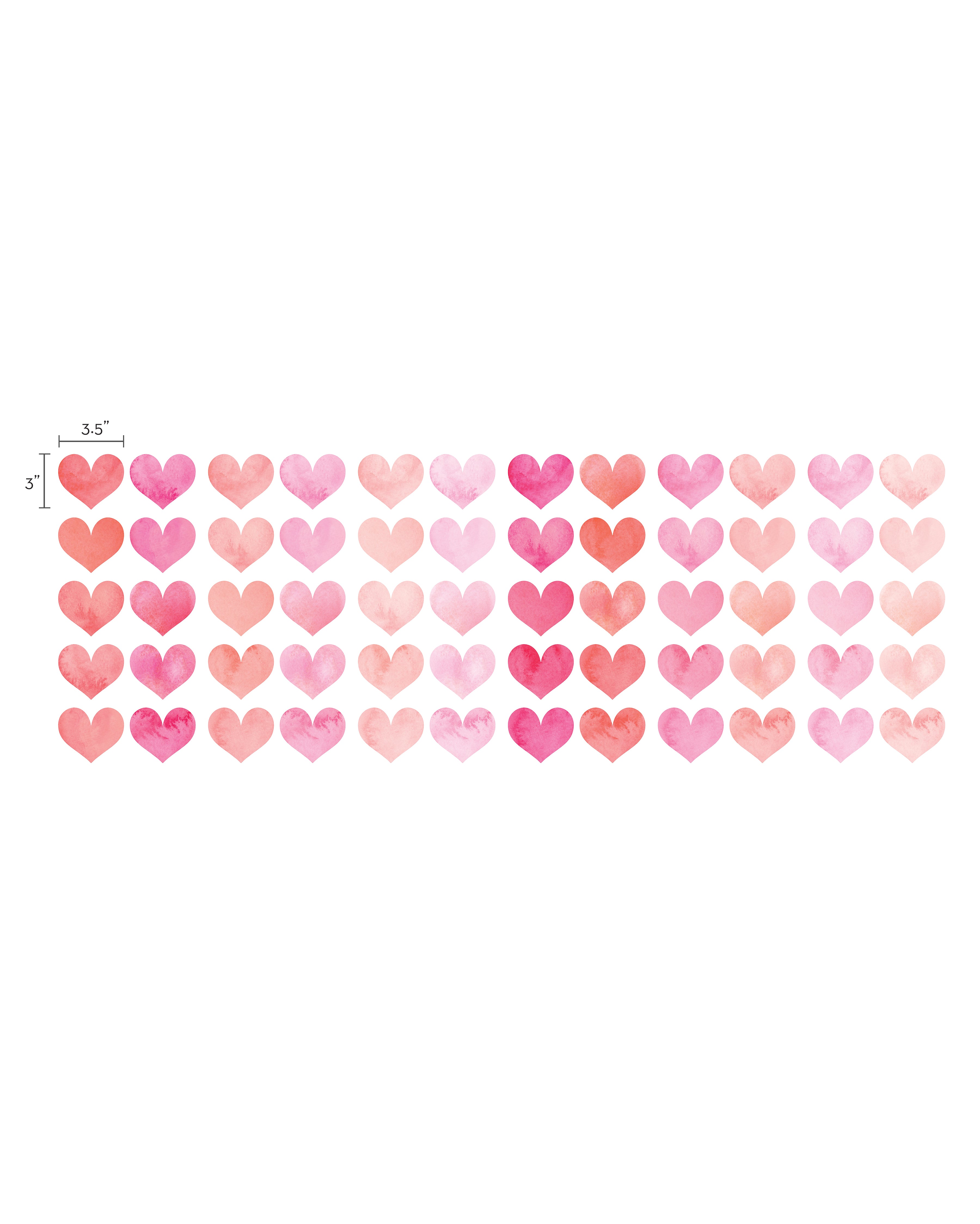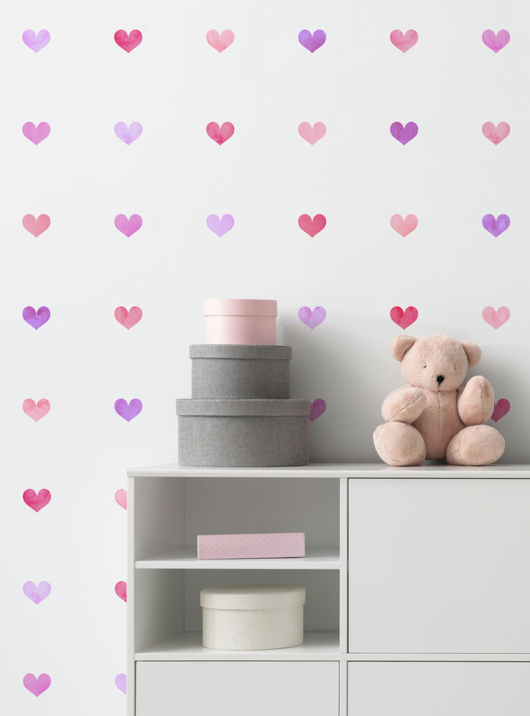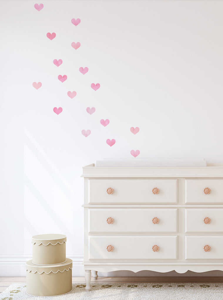 Autocollants muraux aquarelle coeurs, autocollants muraux roses, peler et coller