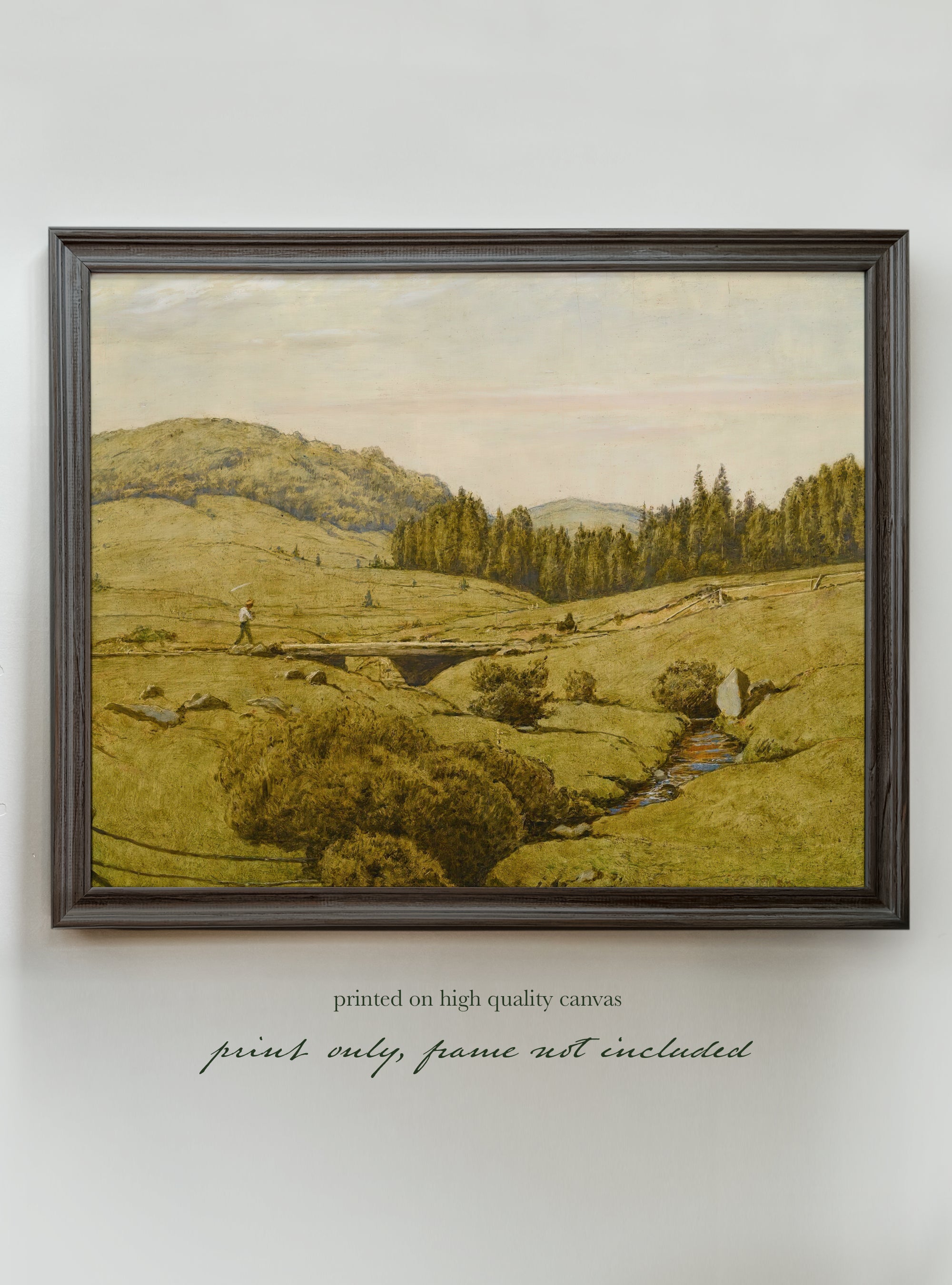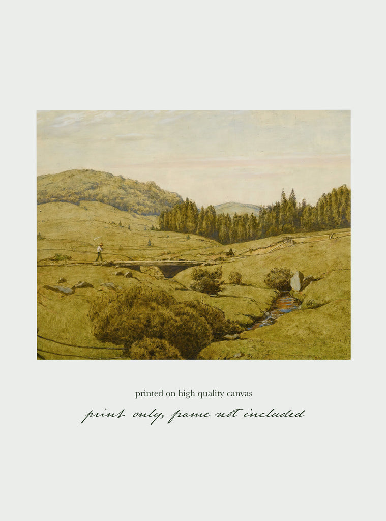 Enhance your living space with this captivating Black Forest Landscape Art Print, expertly printed on high-quality canvas. This serene landscape captures the tranquil beauty of rolling hills and a meandering stream, evoking a sense of peace and connection to nature.