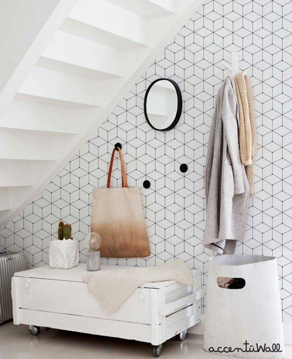 Les lignes épurées de notre papier peint moderne Cube Géométrique sont tout simplement sophistiquées. Utilisez-le pour ajouter une touche scandinave à n’importe quelle pièce de votre maison !