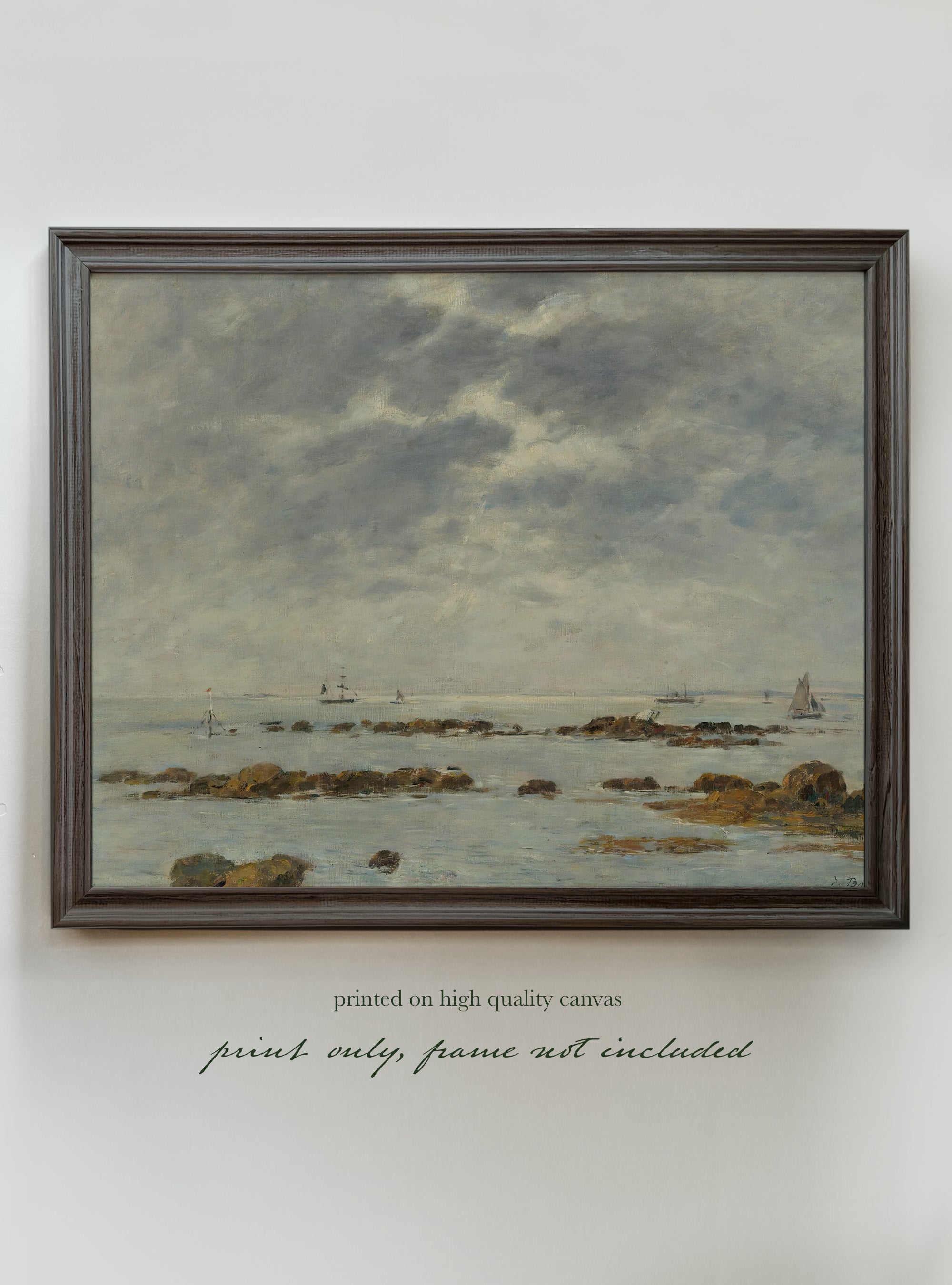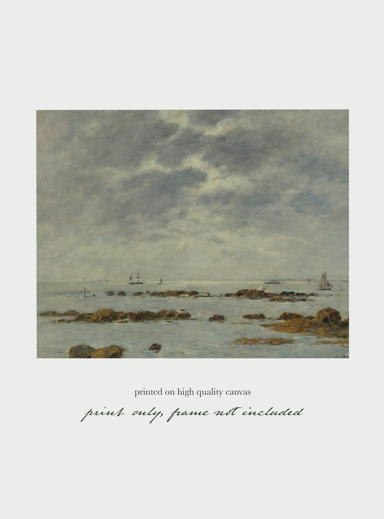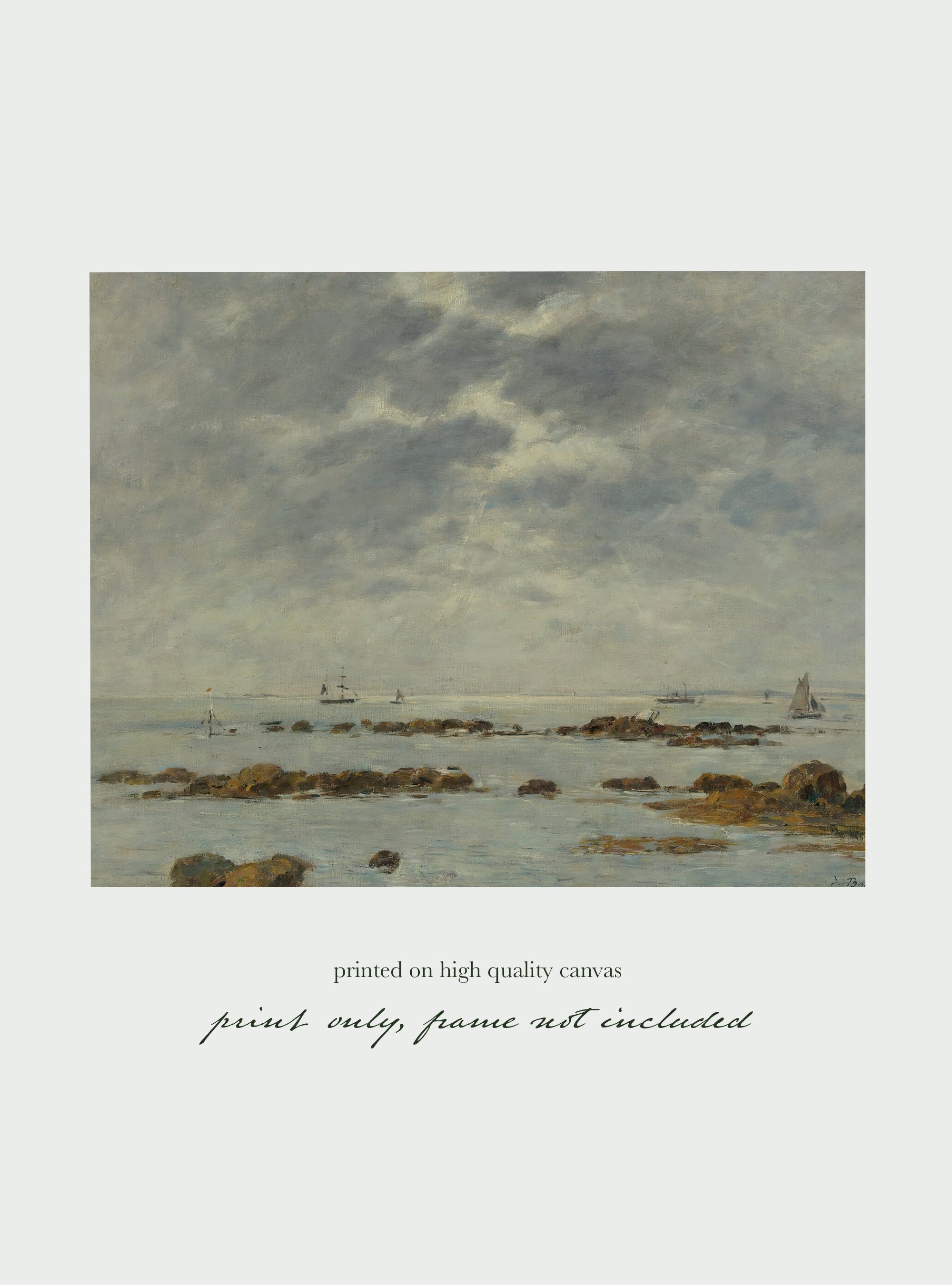 Bring the essence of the sea into your home with this stunning Marine À St. Vaast-La Hougue Art Print, expertly printed on high-quality canvas. This tranquil coastal scene showcases a serene harbor filled with sailboats, set against a backdrop of soft, moody skies that evoke a sense of calm and reflection.