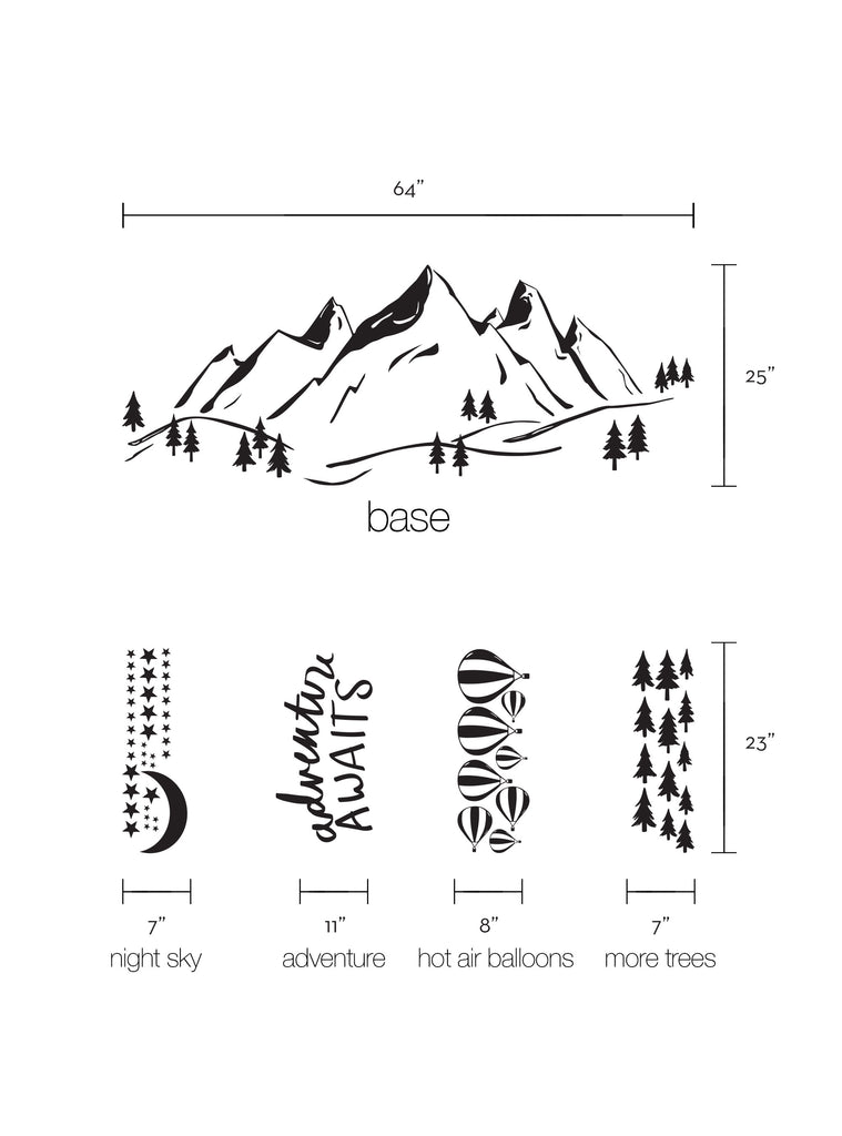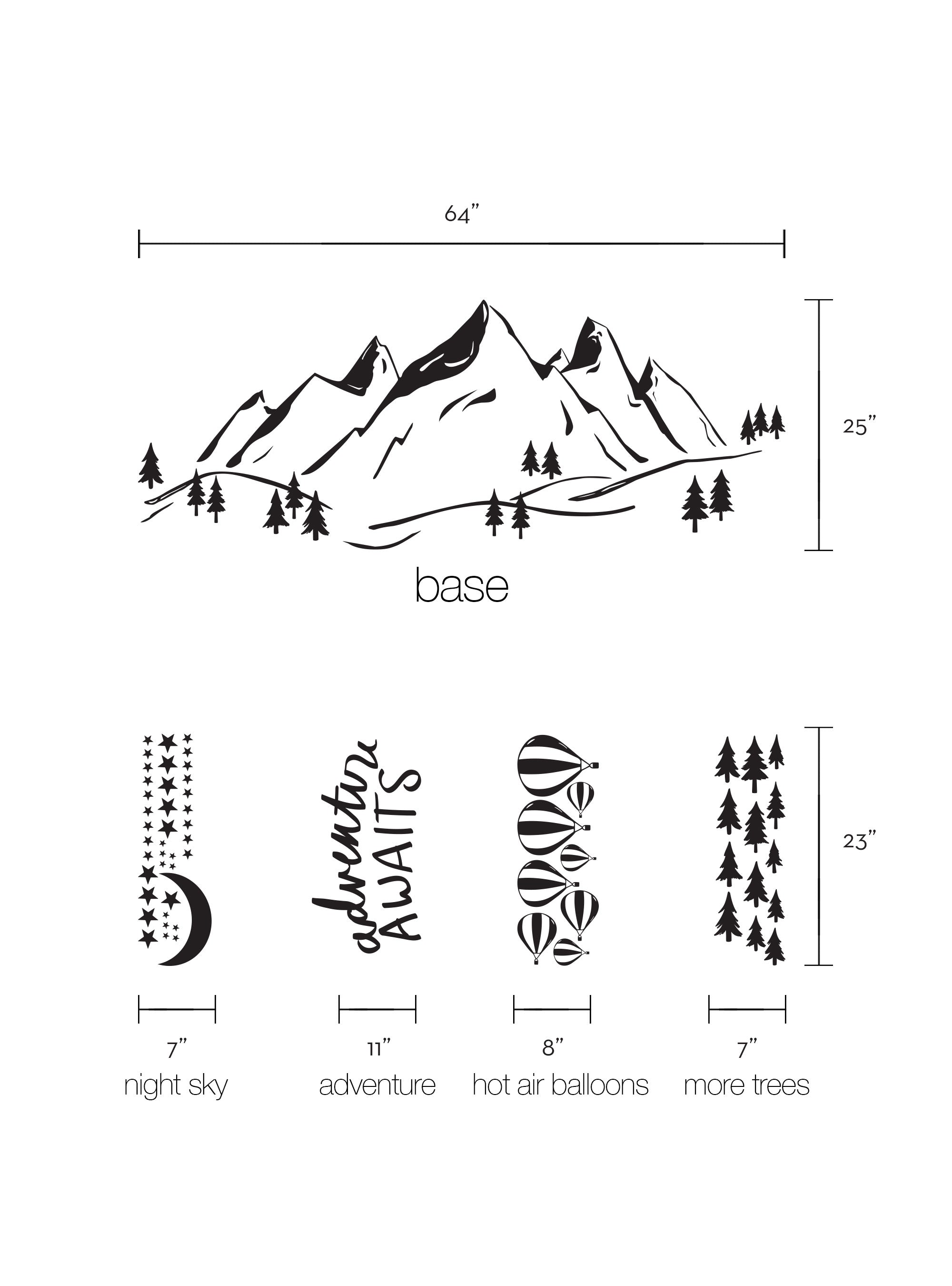 Taille globale de l'autocollant : 64" de largeur x 25" de hauteur.
