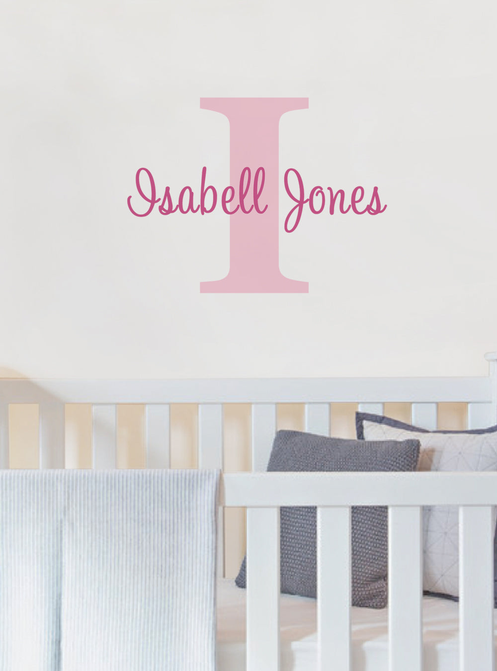 Décalcomanie murale personnalisée avec nom monogramme - Style A
