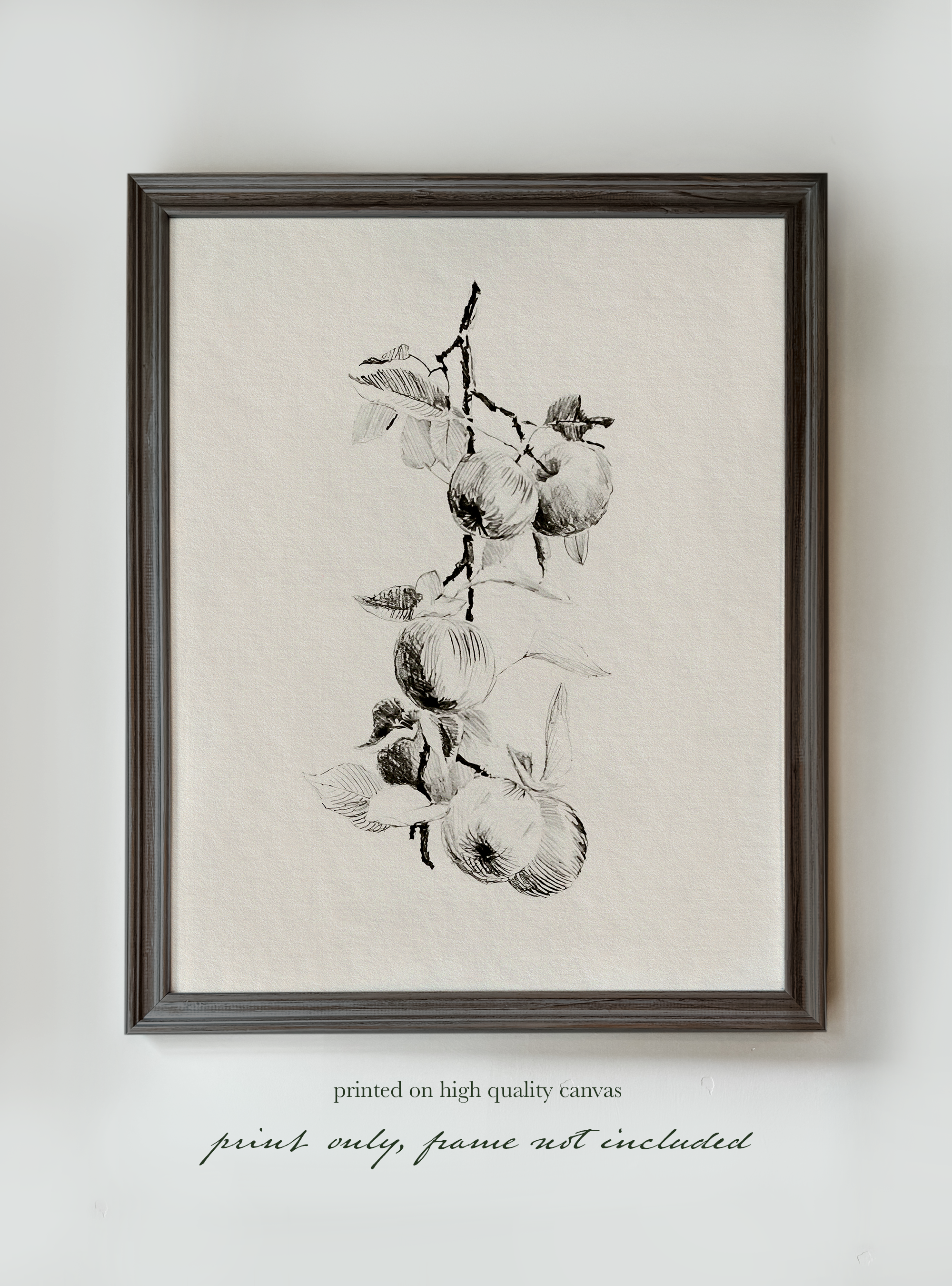 Elevate your space with our exquisite Sketch Two Art Print, featuring a beautifully detailed illustration of delicate fruit branches. Printed on high-quality canvas, this stunning piece captures the essence of nature with its intricate lines and soft textures, perfect for adding a touch of elegance to any room.