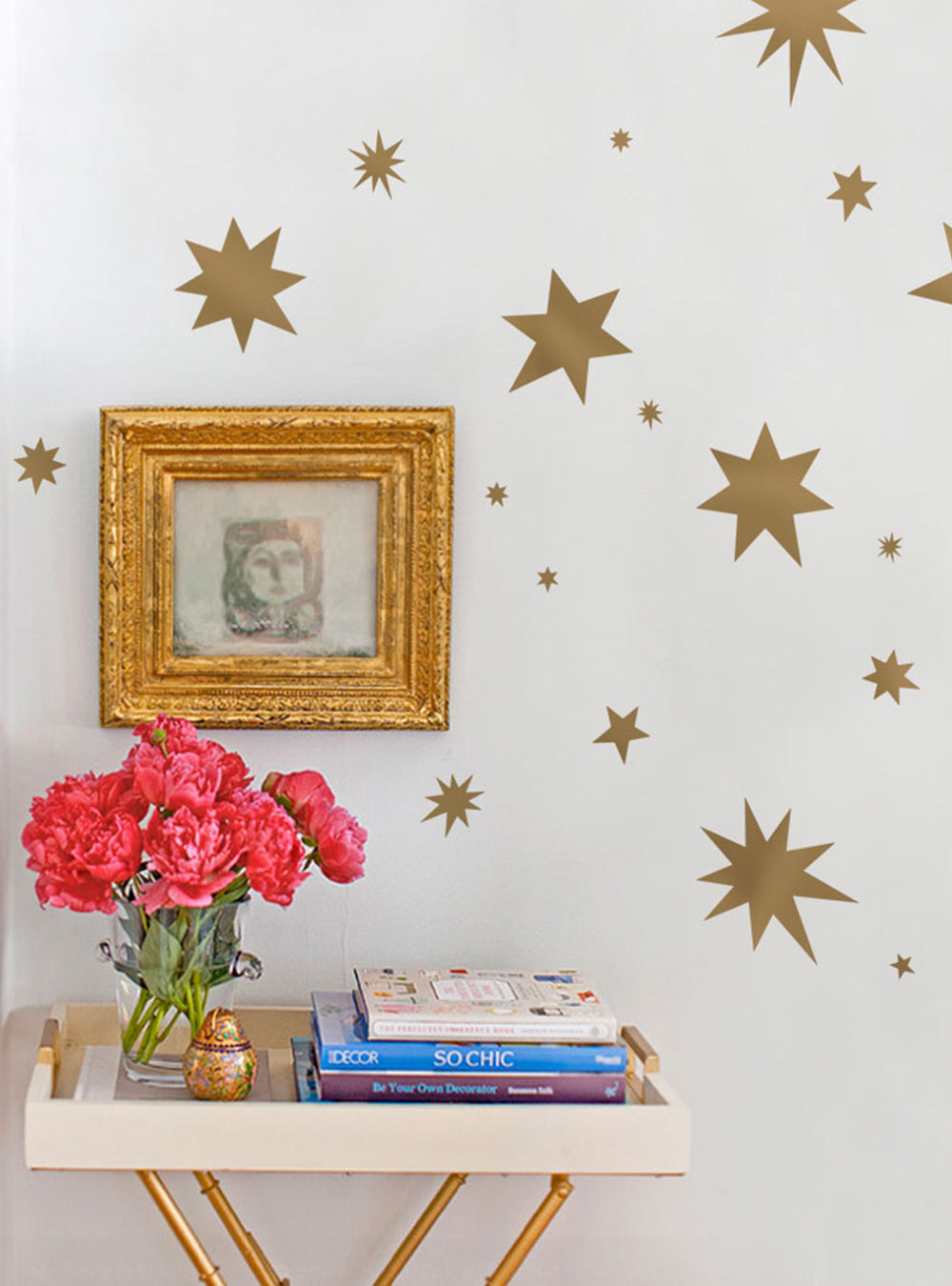 L’autocollant mural étoiles spontanées donne de la brillance et de l’éclat aux chambres, aux crèches, aux salles de jeux et plus encore ! Disponible en or métallisé, argent métallisé ou toute couleur personnalisée de notre nuancier.