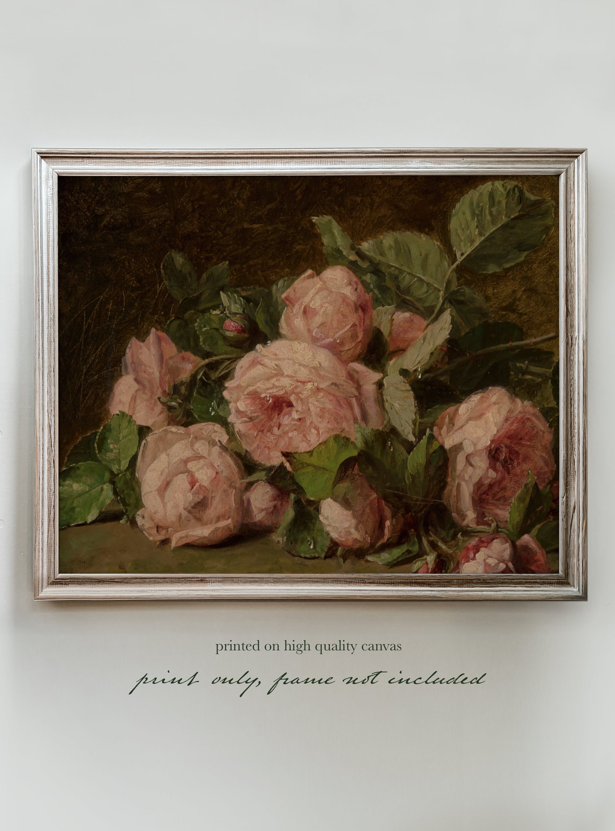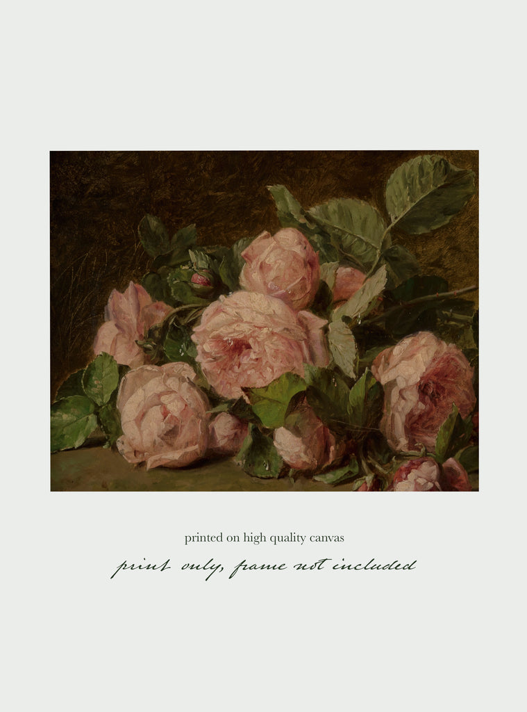 Elevate your space with our exquisite Still Life of Roses on Mossy Ground Art Print featuring a stunning bouquet of soft pink roses. This beautifully rendered piece captures the delicate elegance of nature, making it a perfect addition to any room in your home.