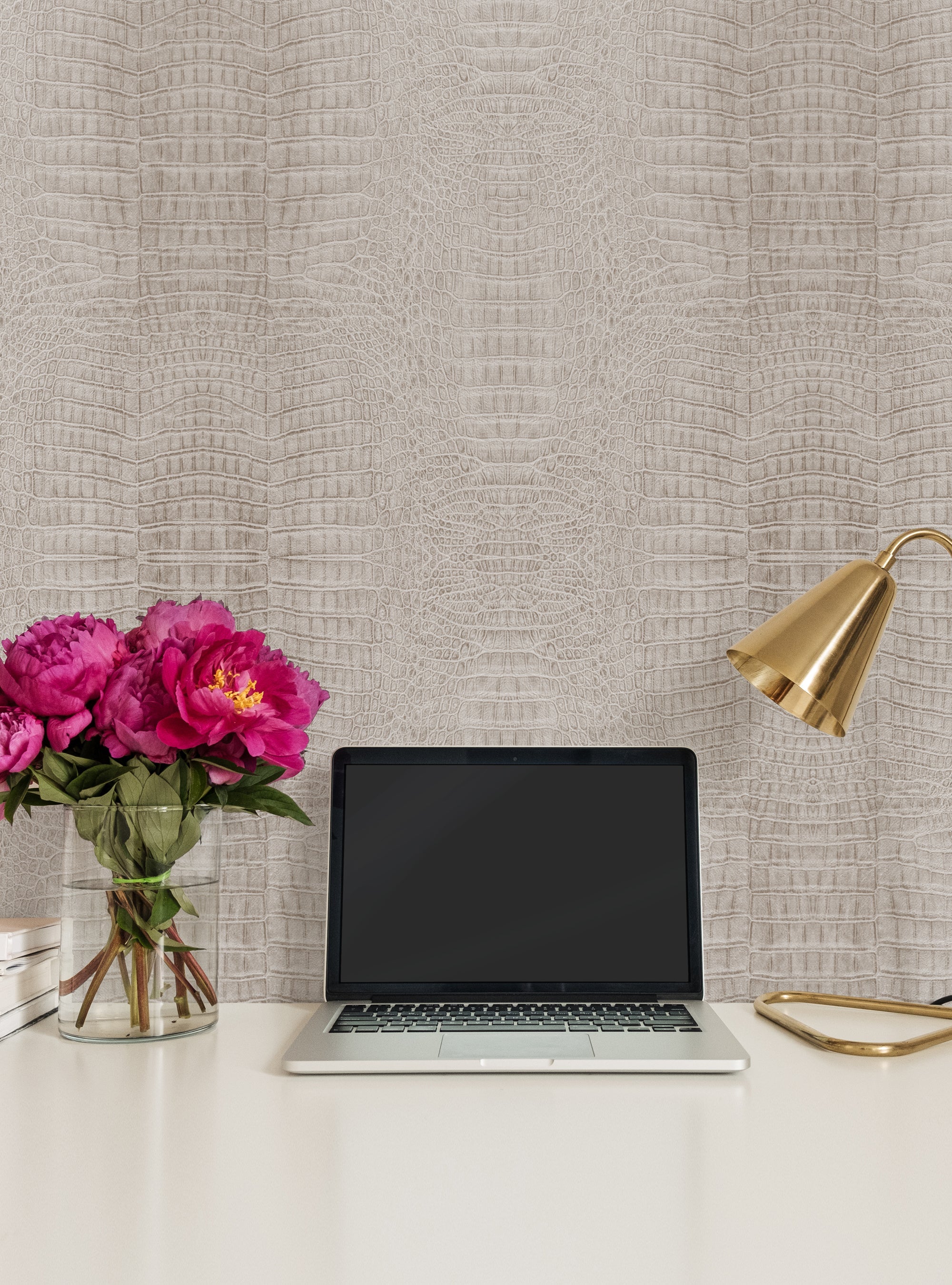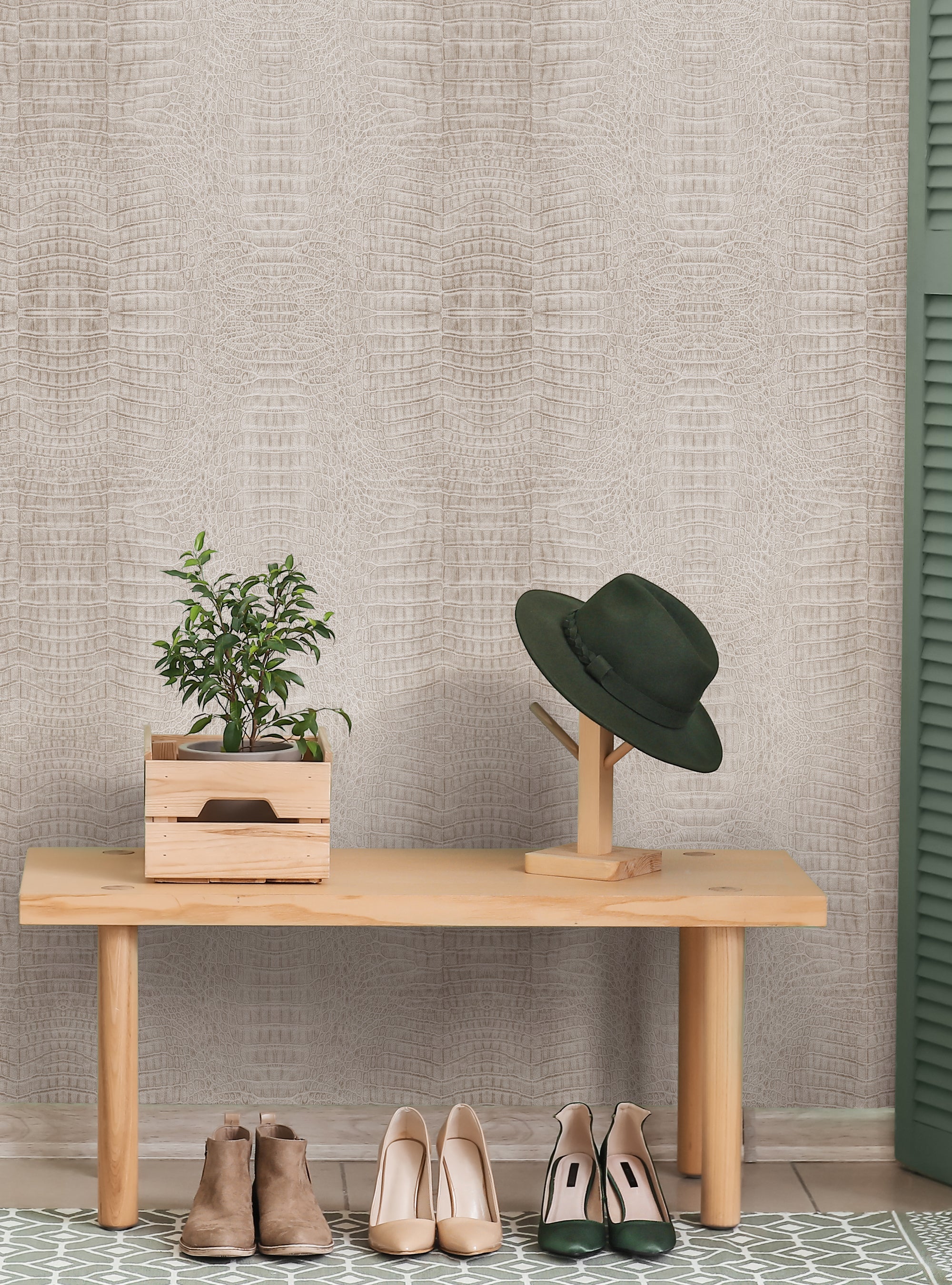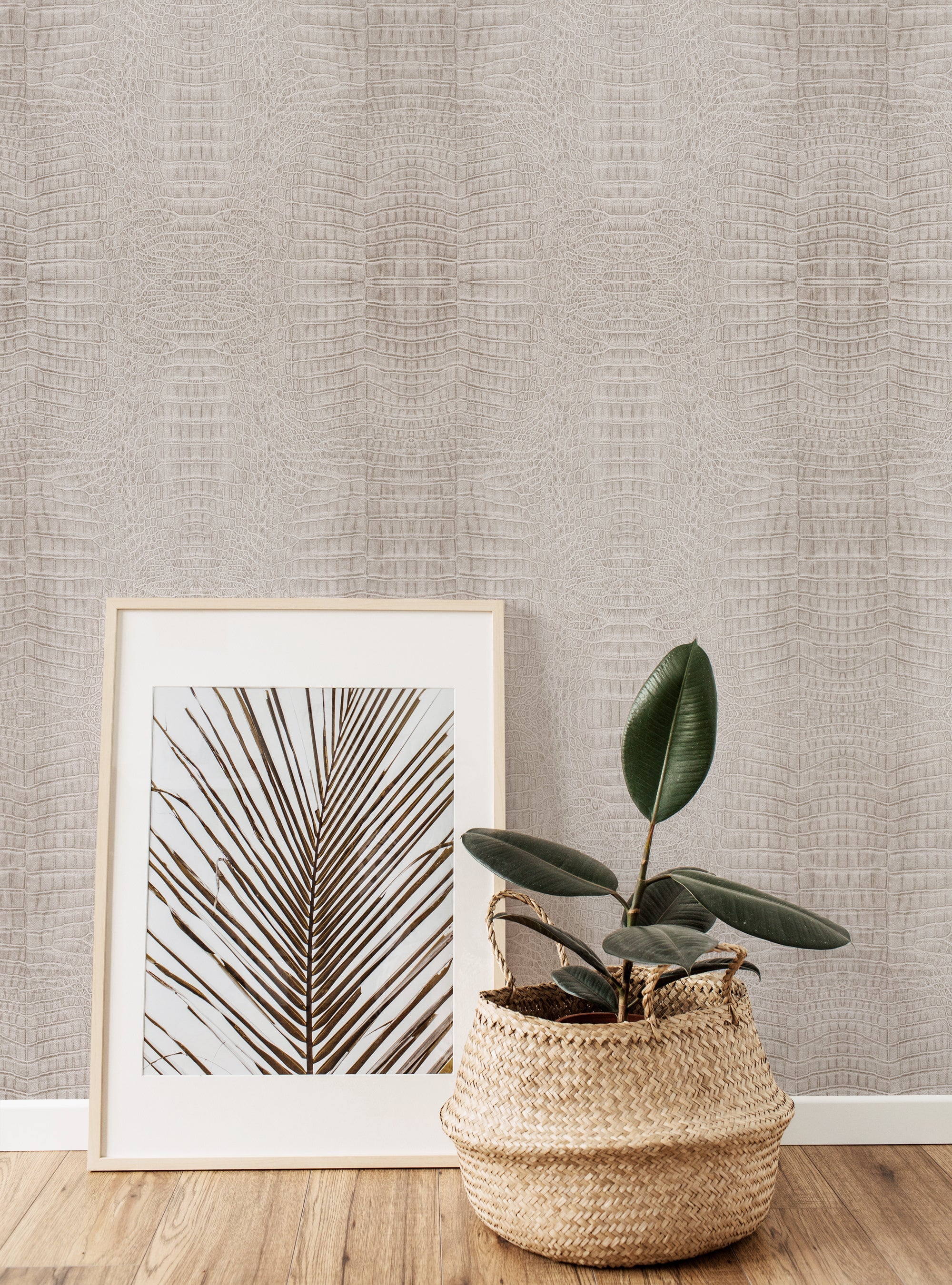 OFF Prints of our Beige Crocodile Fabric Peel and Stick Wallpaper. 24 x 108 inches per panel.