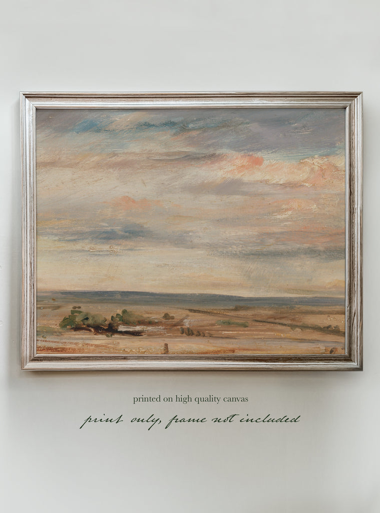 Invite a sense of understated elegance into your space with this captivating Early Morning Art Print. This piece presents a minimalist yet evocative landscape, where the sky meets the earth in a harmonious blend of muted tones. The gentle brushstrokes and soft color palette create a serene and calming atmosphere.