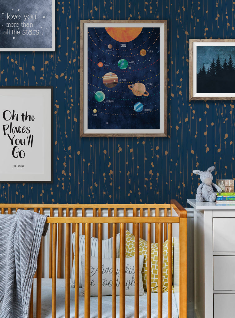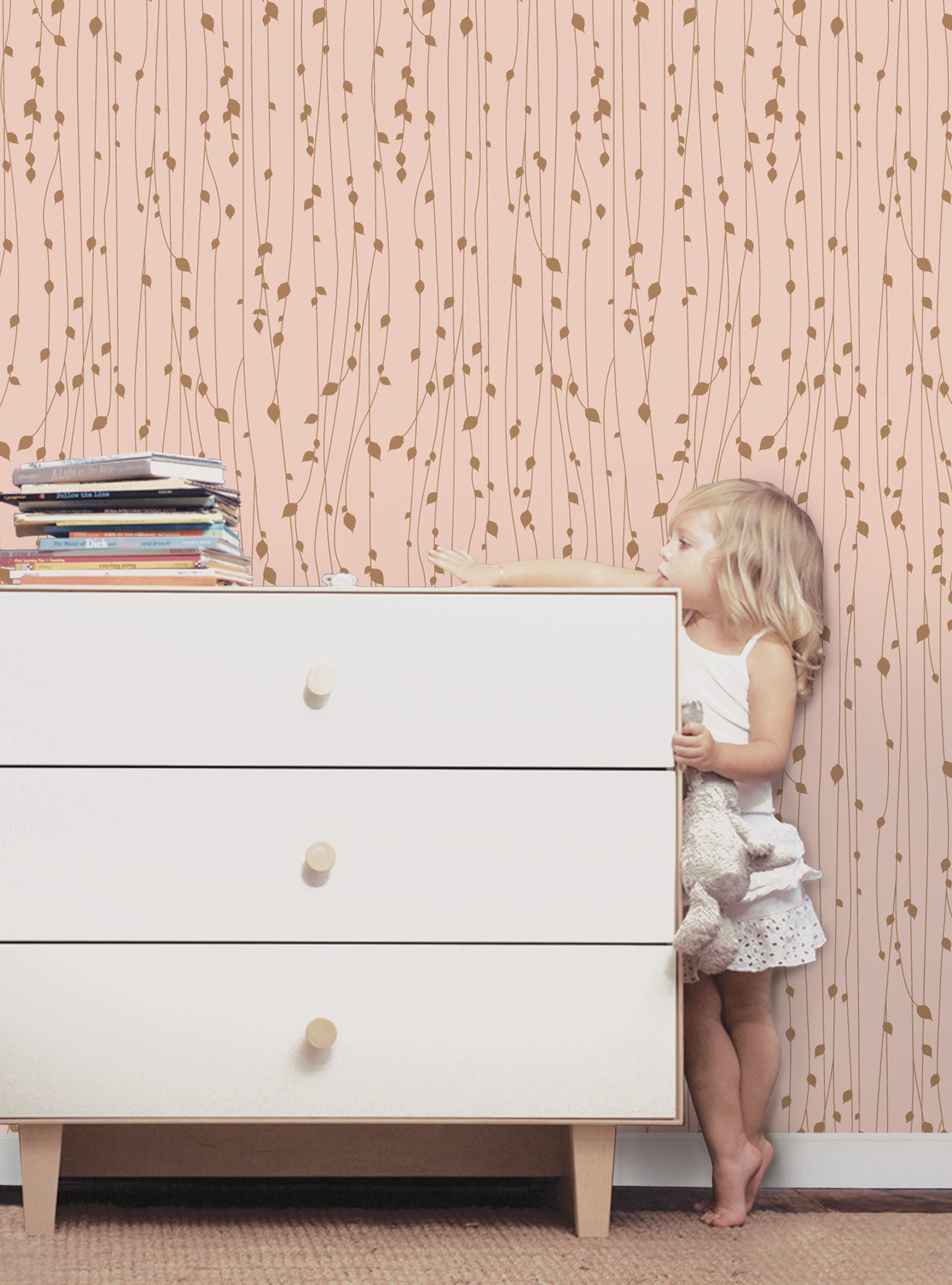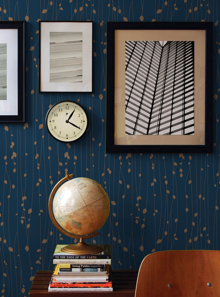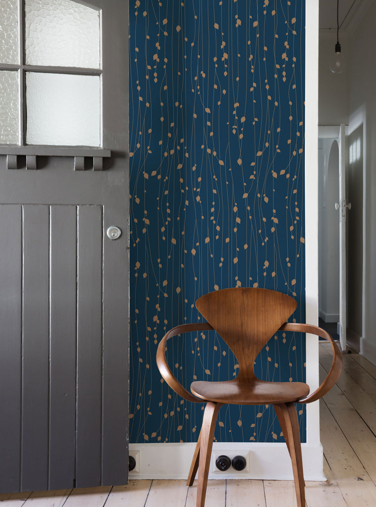 Leaves wallpaper. This wallpaper is designed and made in our studios in New Jersey. The designs are printed onto one of our three wallpaper materials.