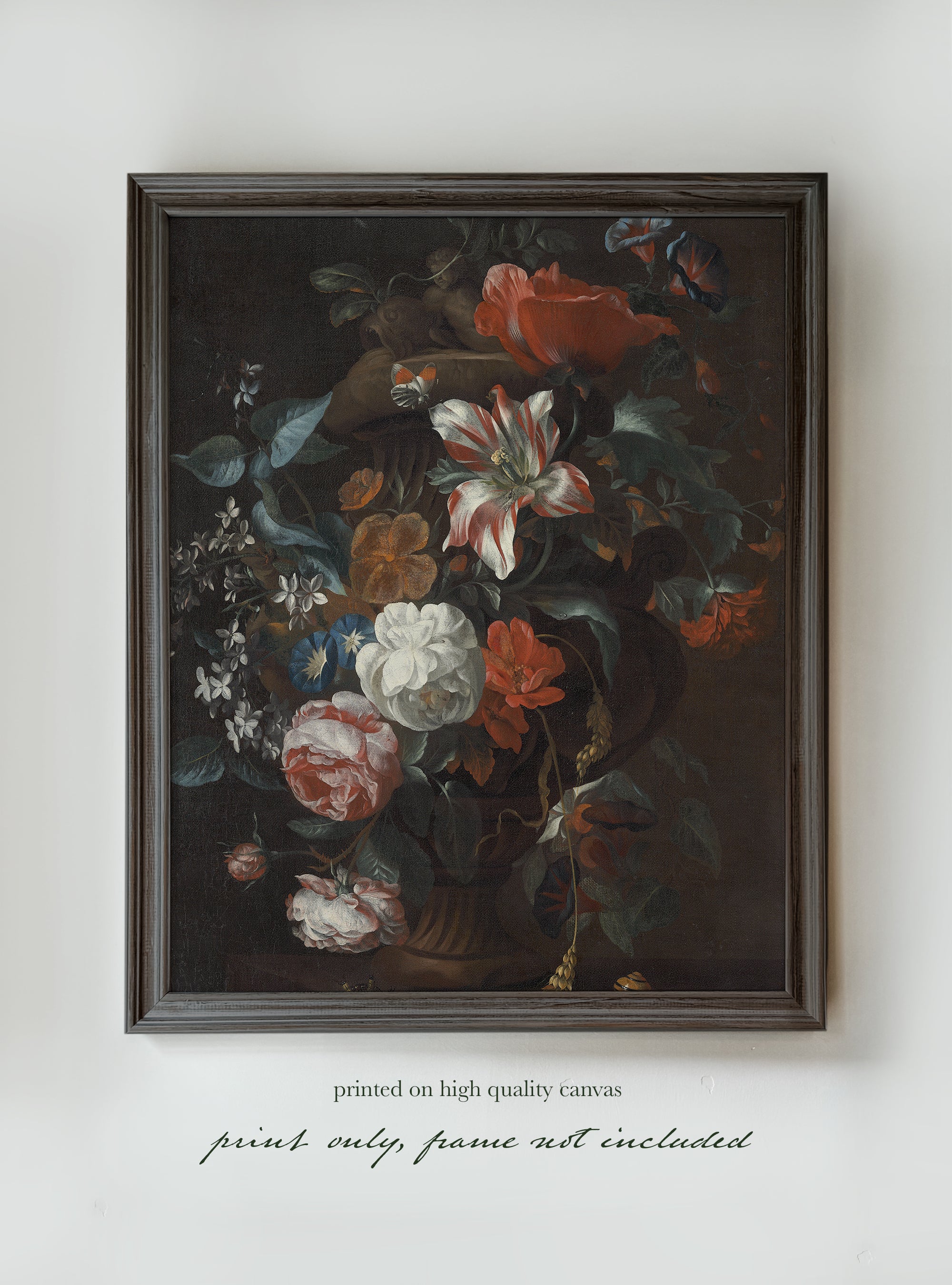 Transform your space with this stunning Moody Floral Art Print, featuring a beautifully detailed arrangement of flowers in rich, vibrant colors. Printed on high-quality canvas, this piece captures the essence of classic floral artistry, making it an ideal addition to any room.
